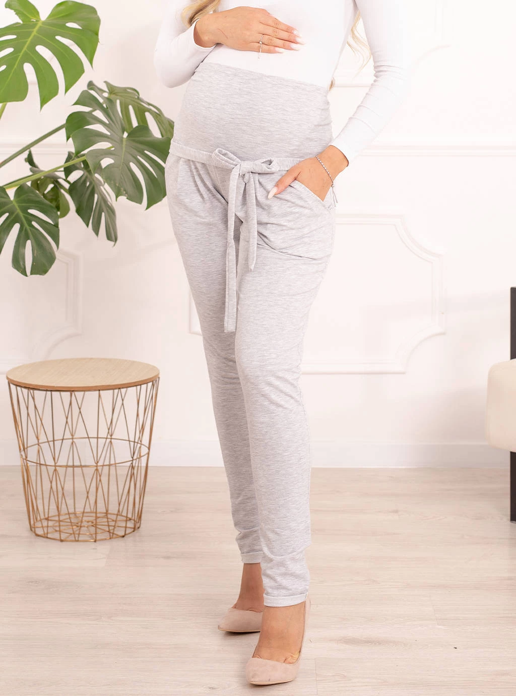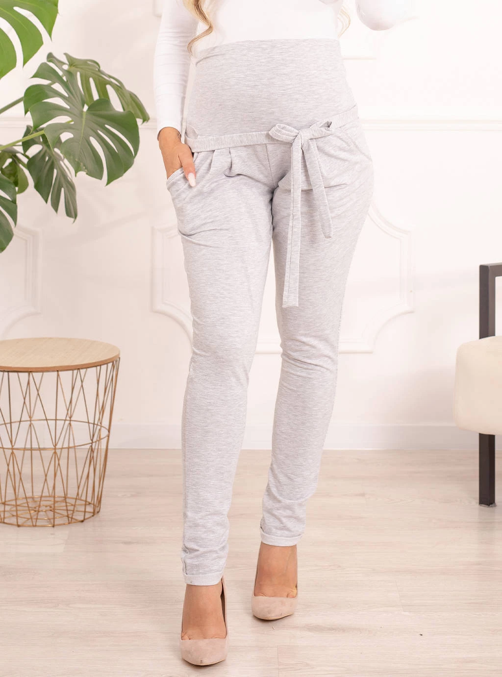 Wyjątkowe spodnie z panelem ciążowym na brzuch w delikatnym odcieniu szarości to propozycja dla kobiet które lubią praktyczne rozwiązania. Szare spodnie pasują do różnych stylizacji i mogą Ci towarzyszyć od I do III trymestru oraz po porodzie kiedy ciało dochodzi do siebie. Specjalny wygodny panel ciążowy wszyty w okolicy brzucha oraz śliczne zaszewki i kieszenie zapewnią Ci komfort oraz wygodę przez cały czas ciążowej przygody. Kokardka w pasie jest już tylko wisienką na torcie jeśli chodzi o Twoje oczekiwania pod względem ubrania w tym wyjątkowym okresie.