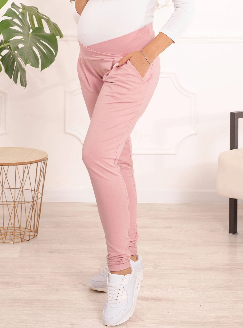 Różowe wygodne spodnie cygaretki z panelem pod brzuch to propozycja dla Pań które lubią romantyczne i praktyczne rozwiązania. Krój spodni który może ci towarzyszyć od I do III trymestru i po porodzie, dzięki specjalnie zaprojektowanemu panelowi ciążowemu na wysokości podbrzusza który nie uciska brzucha wtedy kiedy dochodzisz do siebie po ciąży.
