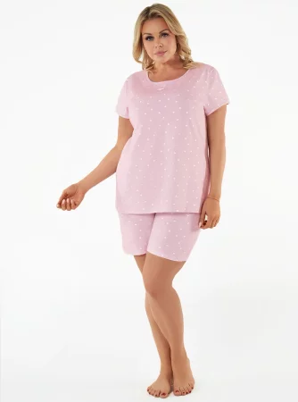 Leta piżama damska krótki rękaw. krótkie spodnie druk róż pudrowy