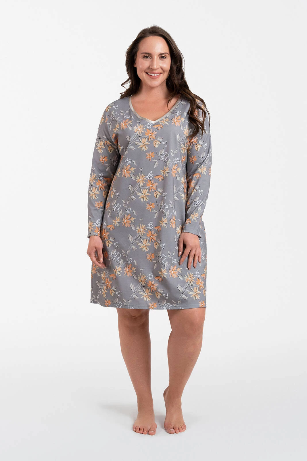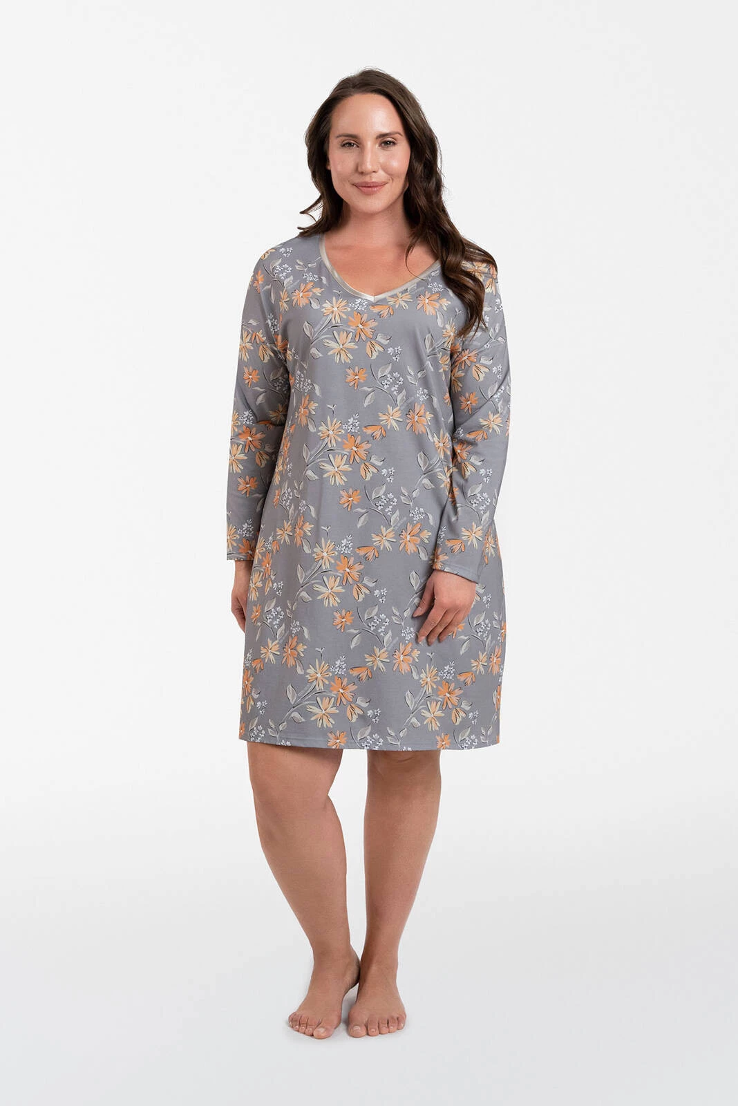 Elegancka i wygodna koszula z długim rękawem doskonale wpisuje się w Twój indywidualny styl i gust. Wybierz szarość i klasyczny krój, jaki oferuje koszula nocna dla kobiet Kasos!