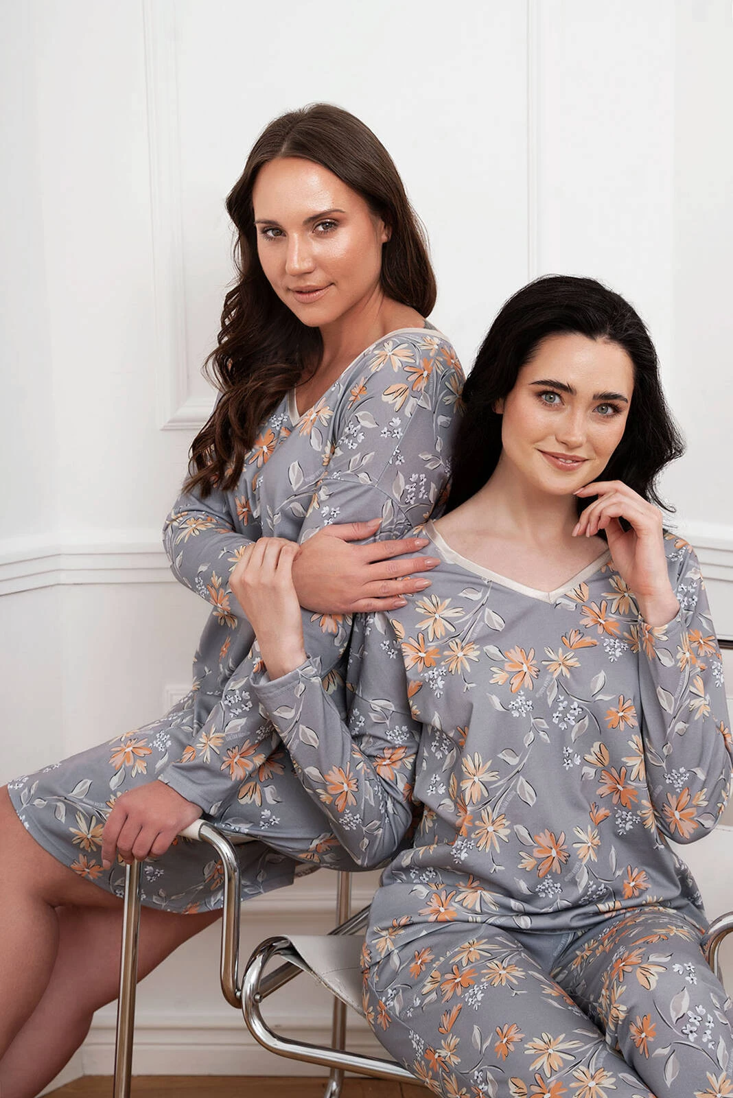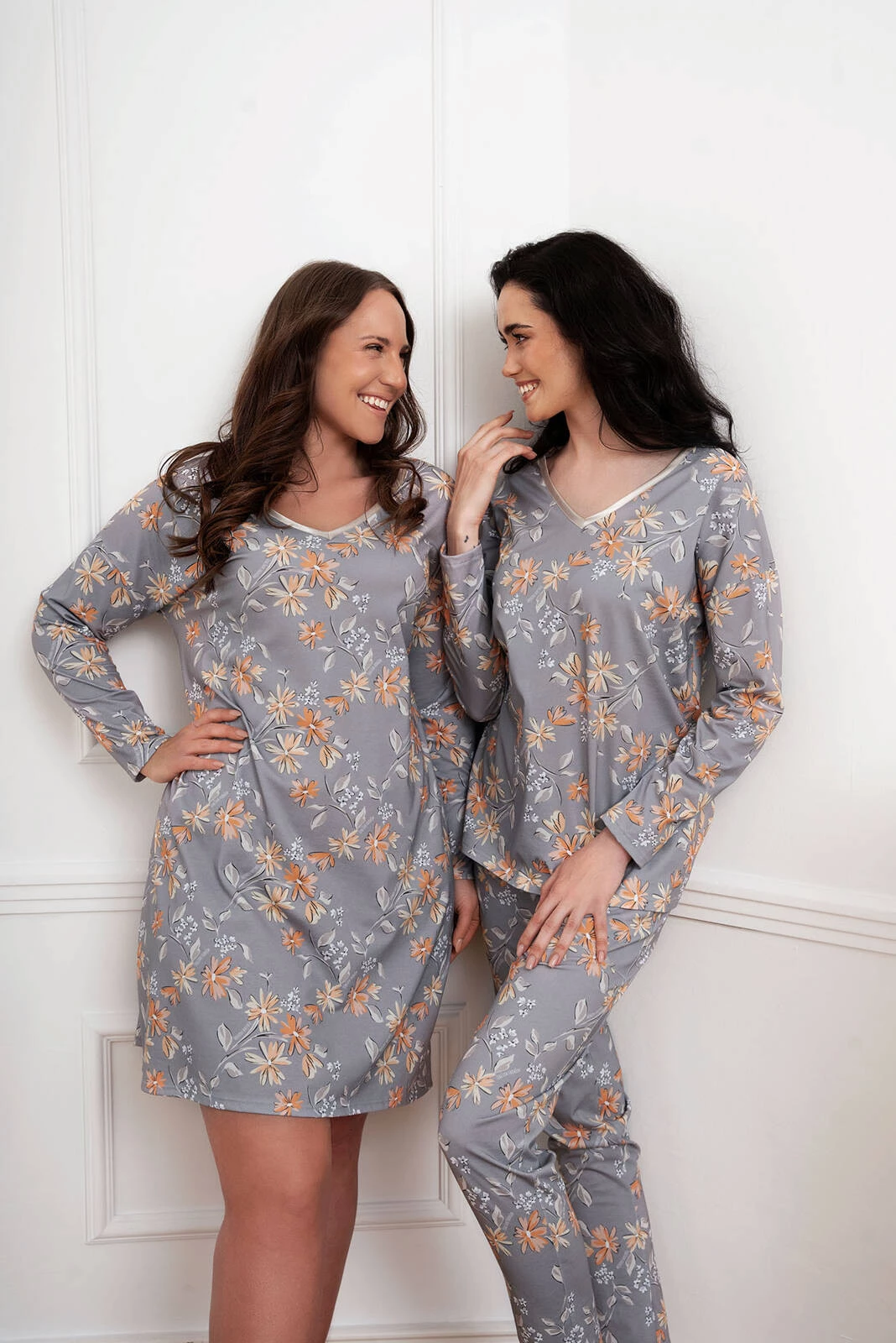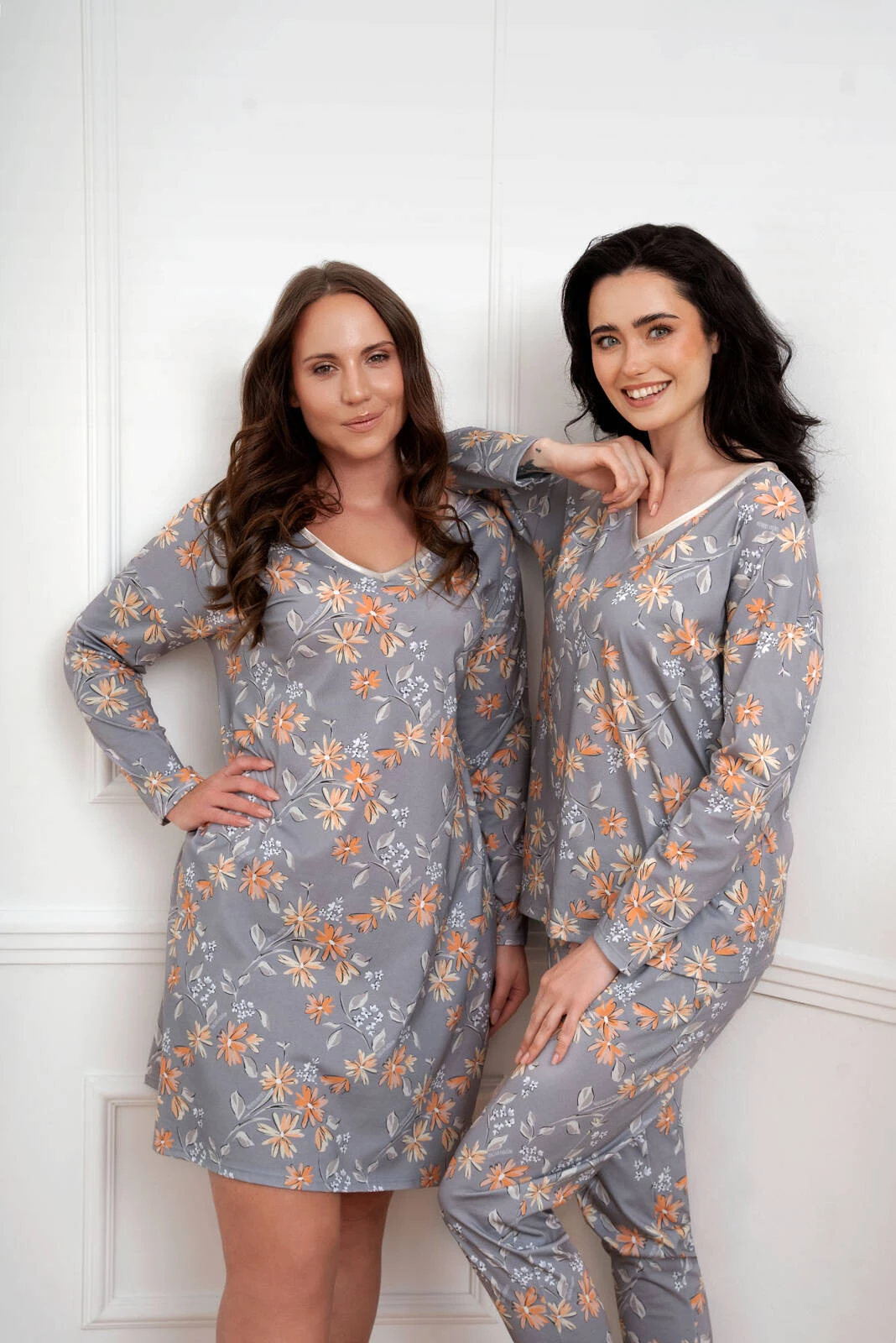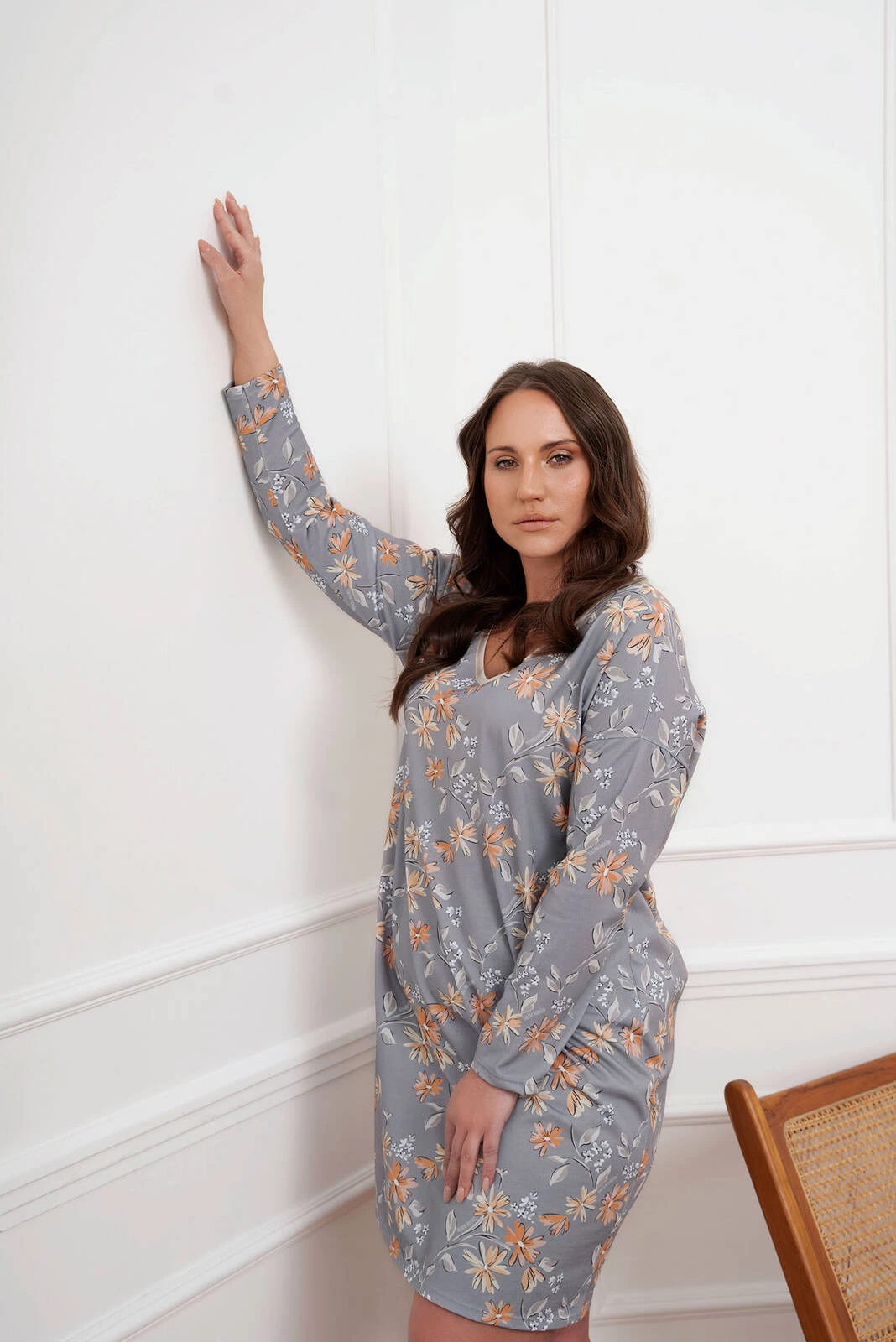 Kasos to koszula nocna damska w delikatne kwiaty na szarym tle. Została zaprojektowana z myślą o kobietach, które pragną nie tylko spokojnego snu, ale również chcą czuć się wyjątkowo i pięknie podczas nocnego wypoczynku. Ta niezwykle przyjemna w dotyku koszula z długim rękawem i dekoltem V, zapewni Wam komfort oraz elegancki wygląd.