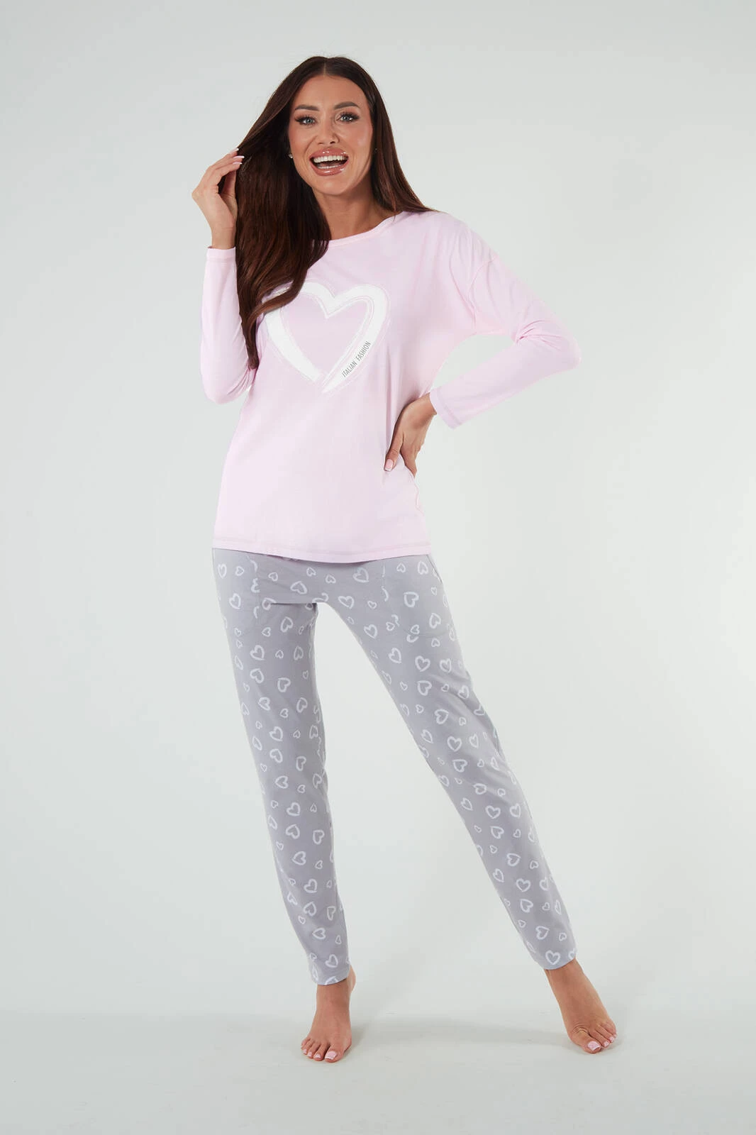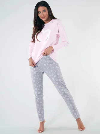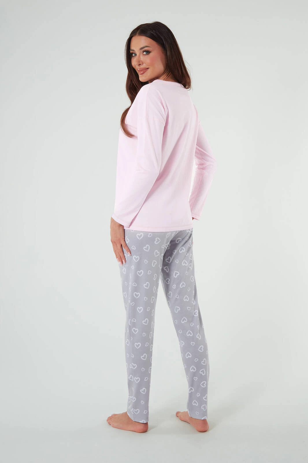 Noelia piżama damska długi rękaw. długie spodnie różowy/druk
