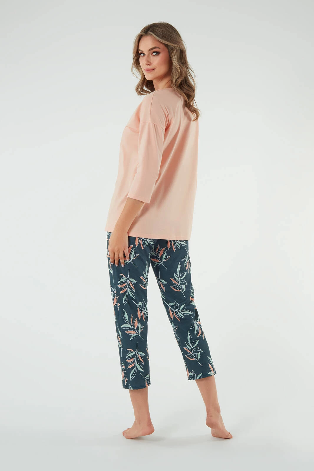 Julietta piżama damska 3/4 rękaw. 7/8 spodnie łososiowy/druk
