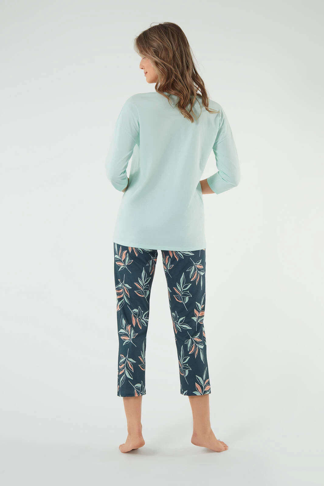 Julietta piżama damska 3/4 rękaw. 7/8 spodnie pistacjowy/druk
