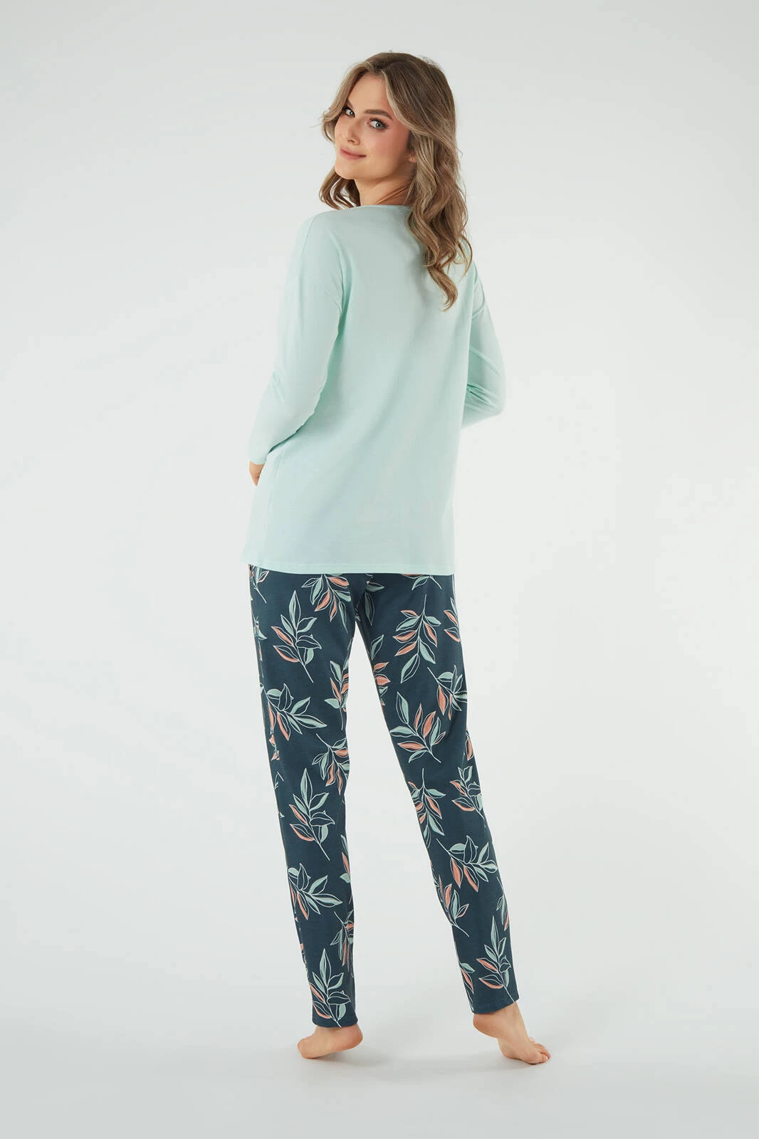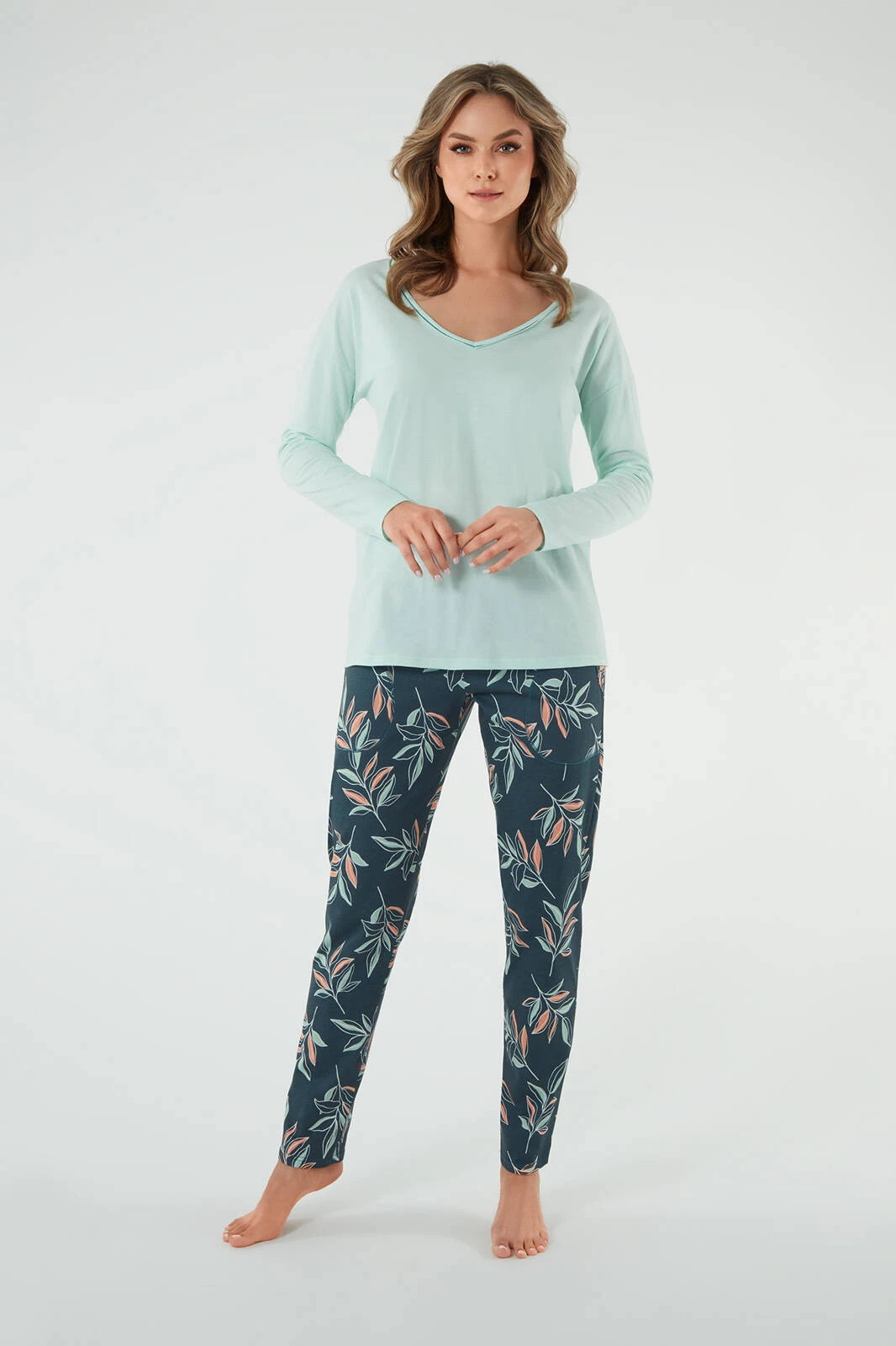 Piżama damska Julietta długi rękaw, długie spodnie - Pistacjowy