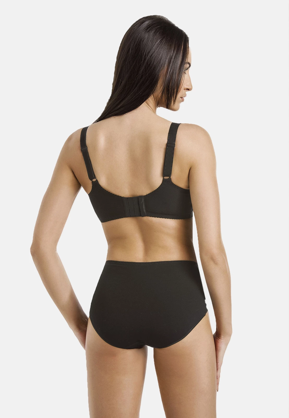 Bawe�niany biustonosz Anastasia w kolorze czarnym. Jest to biustonosz soft, czyli mi�kki, posiadaj�cy fiszbiny. Na bokach zawiera lycr�, tak, by m�c idealnie dopasowa� si� do sylwetki. G�r� miseczek zdobi elegancka kwiatowa koronka, kt�ra nadaje biustonoszowi efektownego wygl�du. Biustonosz posiada pionowe oraz poziome ci�cia, kt�re unosz� i modeluj� biust.� Biustonosz posiada g��bokie miski, zakrywaj�ce ca�e piersi. Jest wy�ej zabudowany, dzi�ki czemu maskuje mankamenty figury. Szeroko�� rami�czek zale�y od rozmiaru. S� one regulowane i ozdobione urocz� kokardka. Biustonosz sprawdzi si� idealnie na co dzie�, poniewa� jest bardzo komfortowy. Wyst�puje tak�e w kolorze bia�ym.