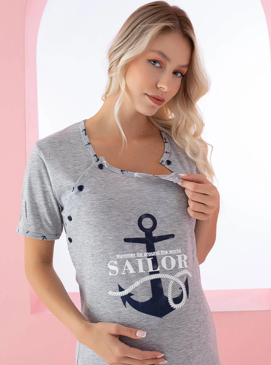 Szara koszula Sailor z kotwicą do karmienia piersią da ci uczucie komfortu kiedy opiekujesz się maluszkiem, a kiedy jesteś w ciąży dostosuje się do zmieniającego ciała i zapewni zdrowy sen, ponieważ wszystkie produkty Formommy są wykonane z najlepszych bawełnianych materiałów i dzianin. I nie jest tu ważne czy pokochasz koszule do karmienia na napy, guziki czy o kopertowym kroju.