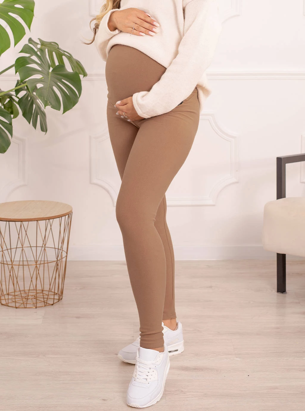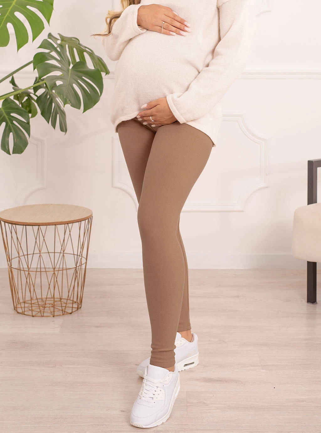 OCIEPLANE LEGGINSY CIĄŻOWE FORMOMMY- KOLOR CIEMNY BEŻ