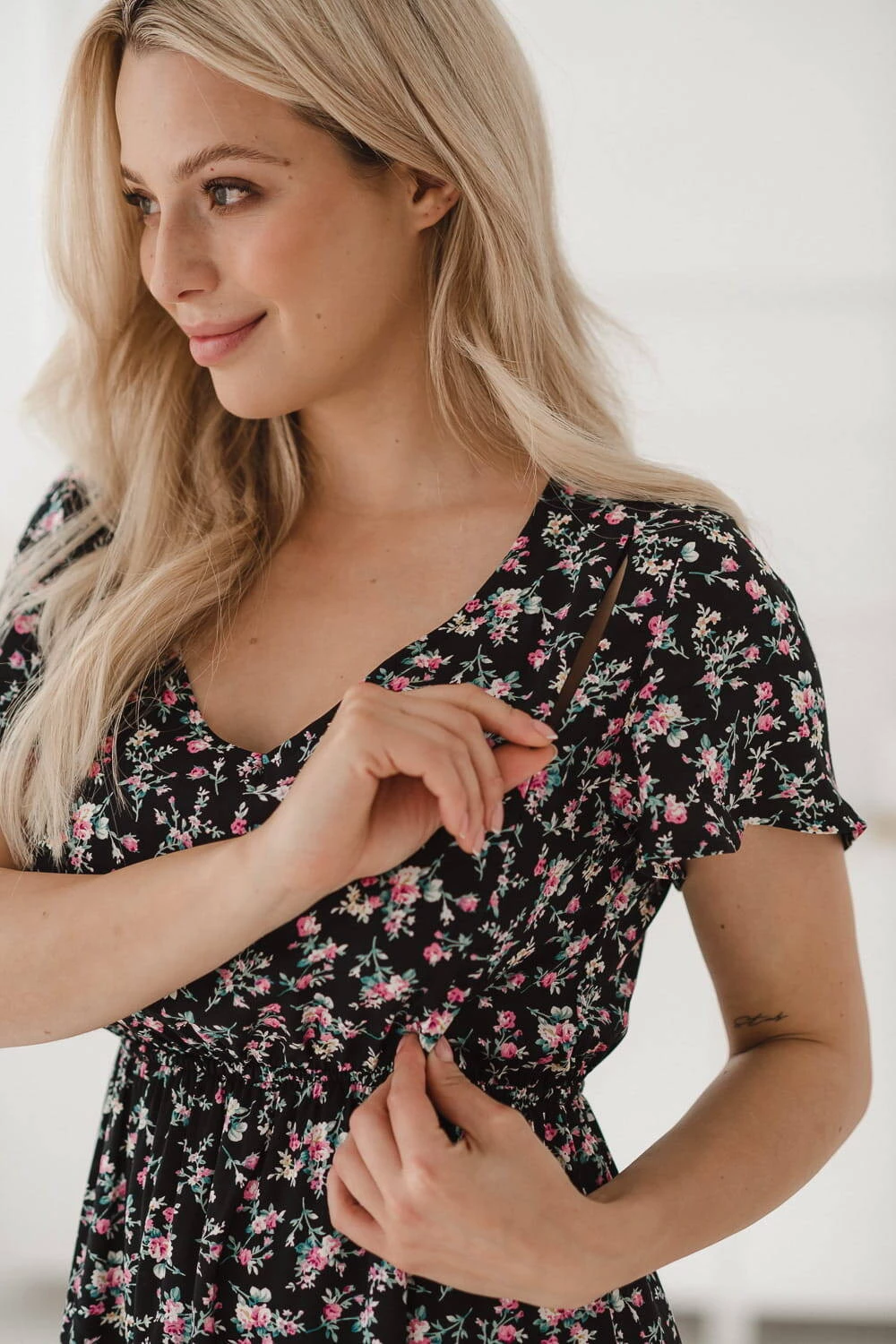 Sukienka ciążowa i do karmienia Lovely Dress krótki rękaw w różyczki