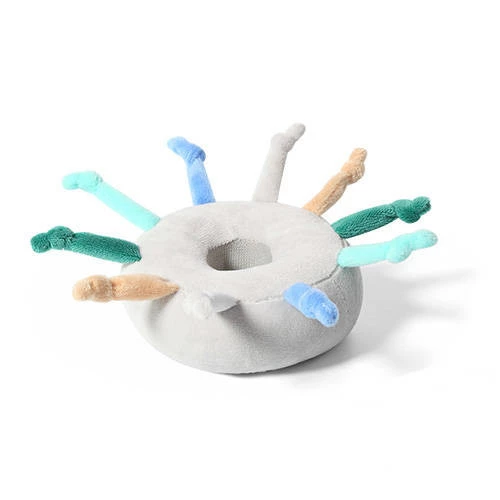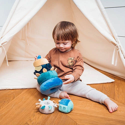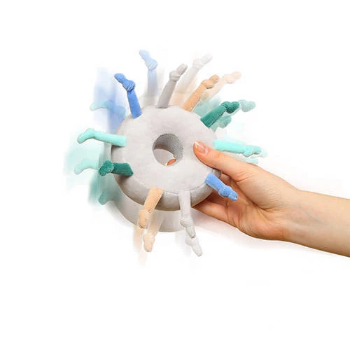 Dzięki zabawce edukacyjnej DREAM MILL Twoje dziecko pozna różnorodny świat kolorów, dźwięków i kształtów. Zabawkę można układać w kształt wieży, skłaniając dziecko do myślenia przestrzennego. Przeznaczone dla dzieci w wieku od 0 miesięcy. Ideą kolekcji jest pobudzenie ciekawości dziecka i zachęcenie go do aktywności i zdobywania nowych umiejętności poprzez zabawę. Zabawkę wykonaliśmy z wysokiej jakości, przyjemnego w dotyku materiału. Dzięki interaktywnym elementom Twoje dziecko rozwinie zmysł dotyku, słuchu i wzroku. Zabawka wspomaga rozwój manualny dziecka poprzez zachęcanie do chwytania i budowania nowych struktur. Dziecko może łatwo przekładać zabawki z rączki do rączki, ćwicząc chwyt dłoni. Zabawka składa się z kilku części, które można ułożyć w wieżyczkę. Dzięki temu dziecko stymuluje swój mózg i rozwija zdolności poznawcze, a także uczy myślenia przestrzennego. Dołączony do zabawki miękki silikonowy gryzak koi podrażnione dziąsła podczas ząbkowania. Dźwięk dzwoneczka jest delikatny i przyjemny. Działa kojąco dla ucha. Uspokoi i wyciszy Twojego malucha. Kolorowe supełki stymulują zmysł dotyku dziecka. Szeleszczące elementy ukryte w listkach zaciekawią dziecko i przykują jego uwagę. Zabawka jest zgodna z normami bezpieczeństwa obowiązującymi w Unii Europejskiej.