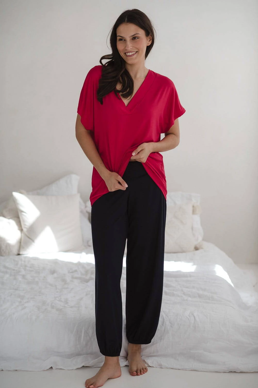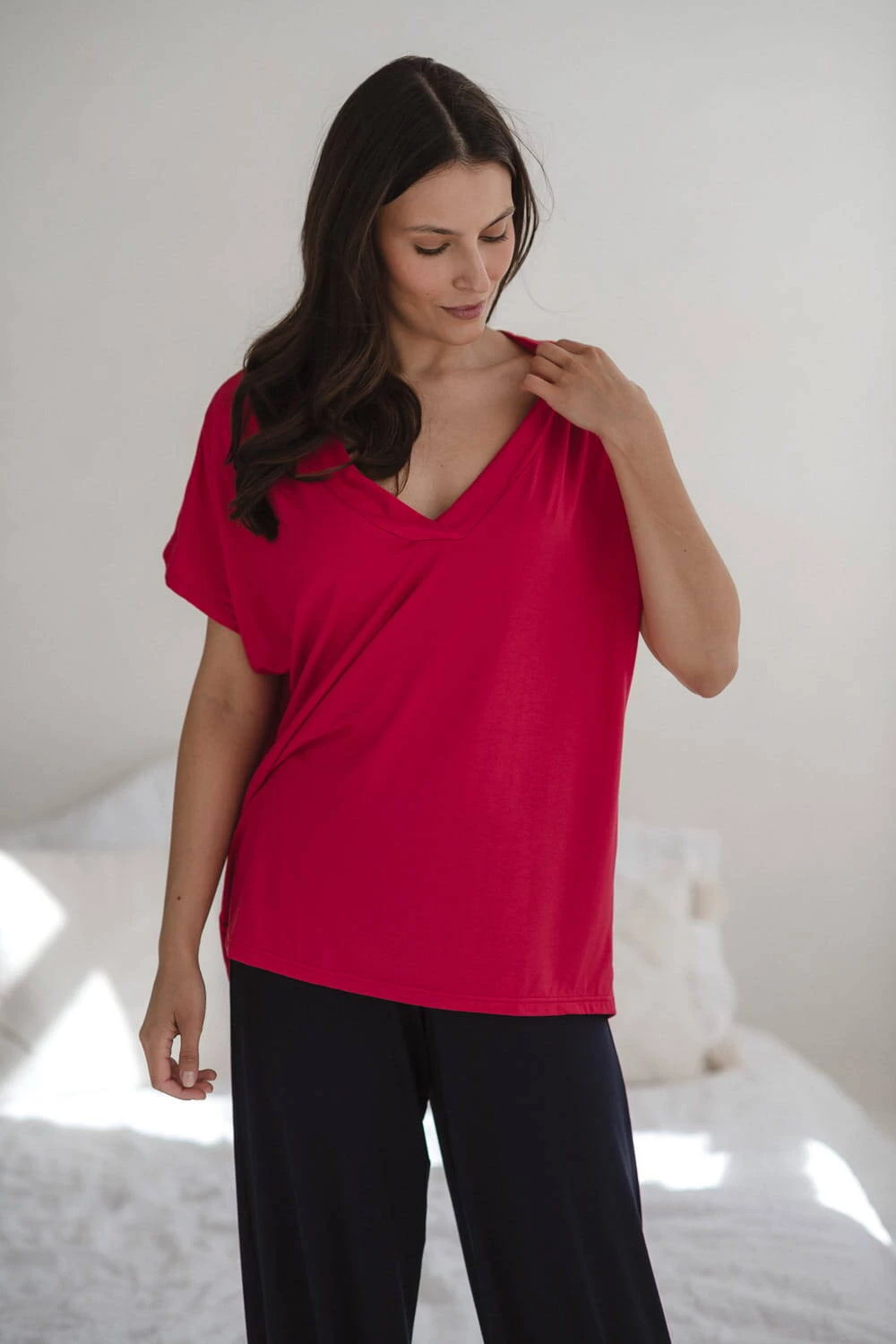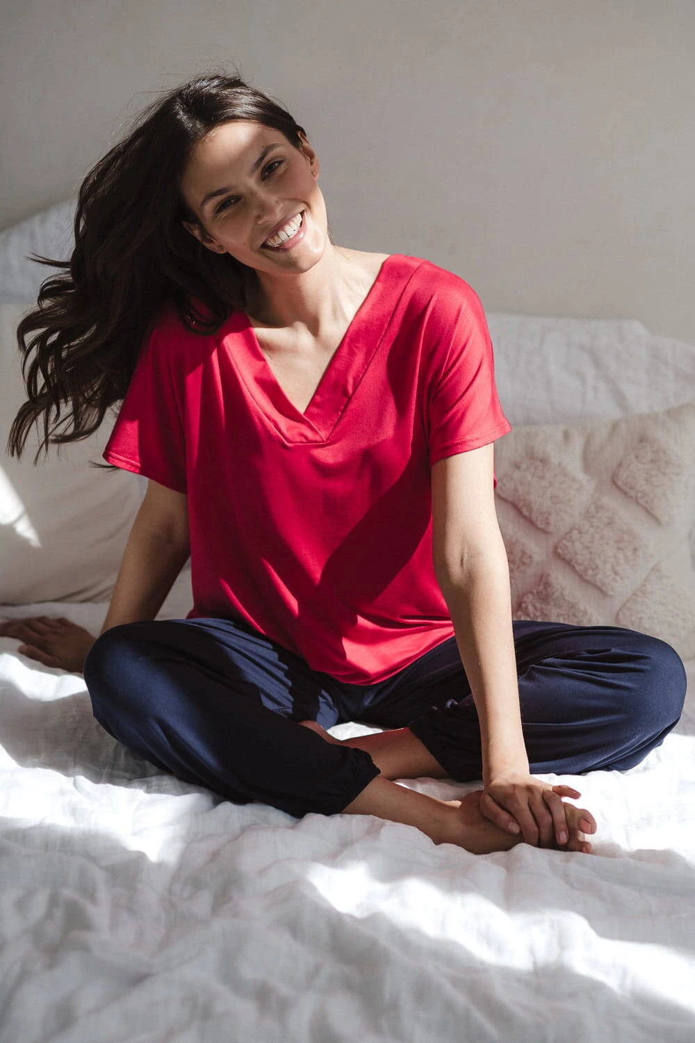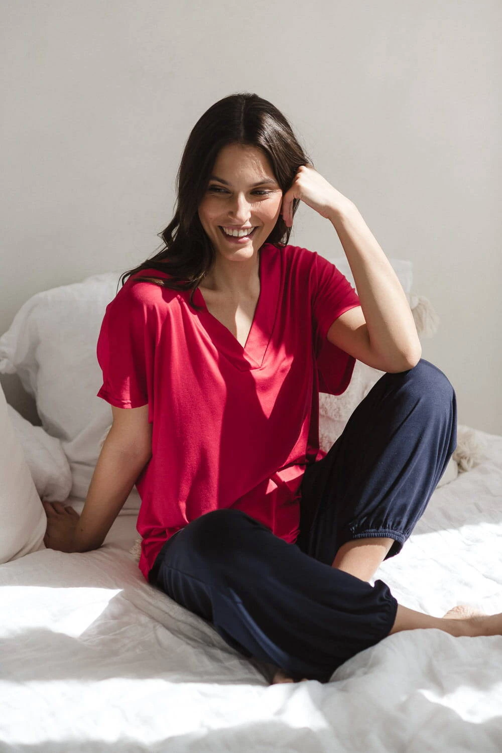 Bambusowa bluzka od piżamy ciążowej do karmienia krótki rękaw Moon malinowa