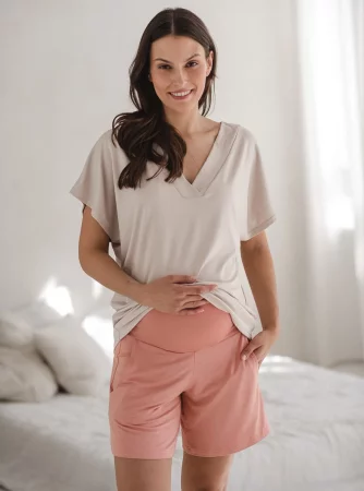 Bambusowe spodnie od piżamy ciążowej Moon krótkie herbaciana róża