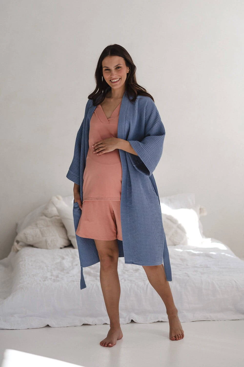 Multifunkcjonalna piżama ciążowa i do karmienia Moon to idealne rozwiązanie dla przyszłych mam. Wybierz swój ulubiony zestaw kolorów, długość spodni i rękawów! Nasze piżamy są uszyte z bambusowej dzianiny, którą pokochasz od pierwszego założenia - jest niezwykle miękka i jedwabiście gładka.