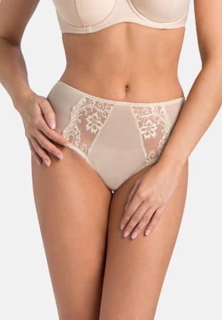 Majtki Marte to doskonałe połączenie elegancji i komfortu, idealne dla każdej kobiety, która ceni sobie styl i wygodę. Wykonane z przezroczystej siatki połączonej z delikatną koronką w beżowym kolorze.