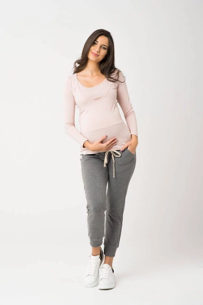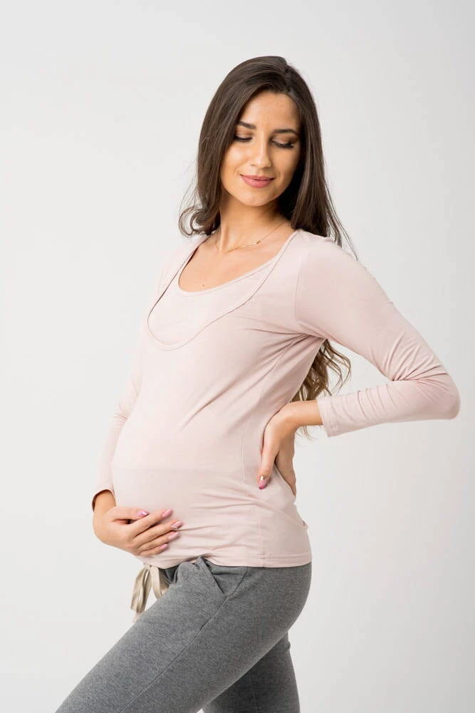 Bluzka ciążowa i do karmienia długi rękaw NOW AND THEN - Różowa