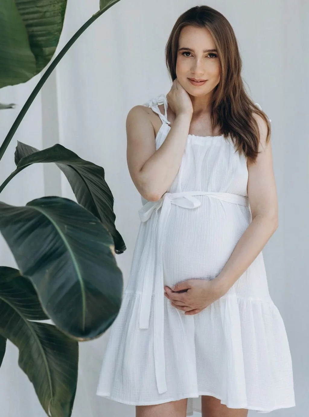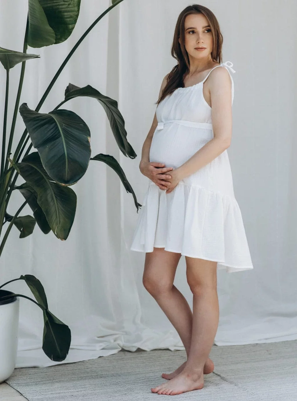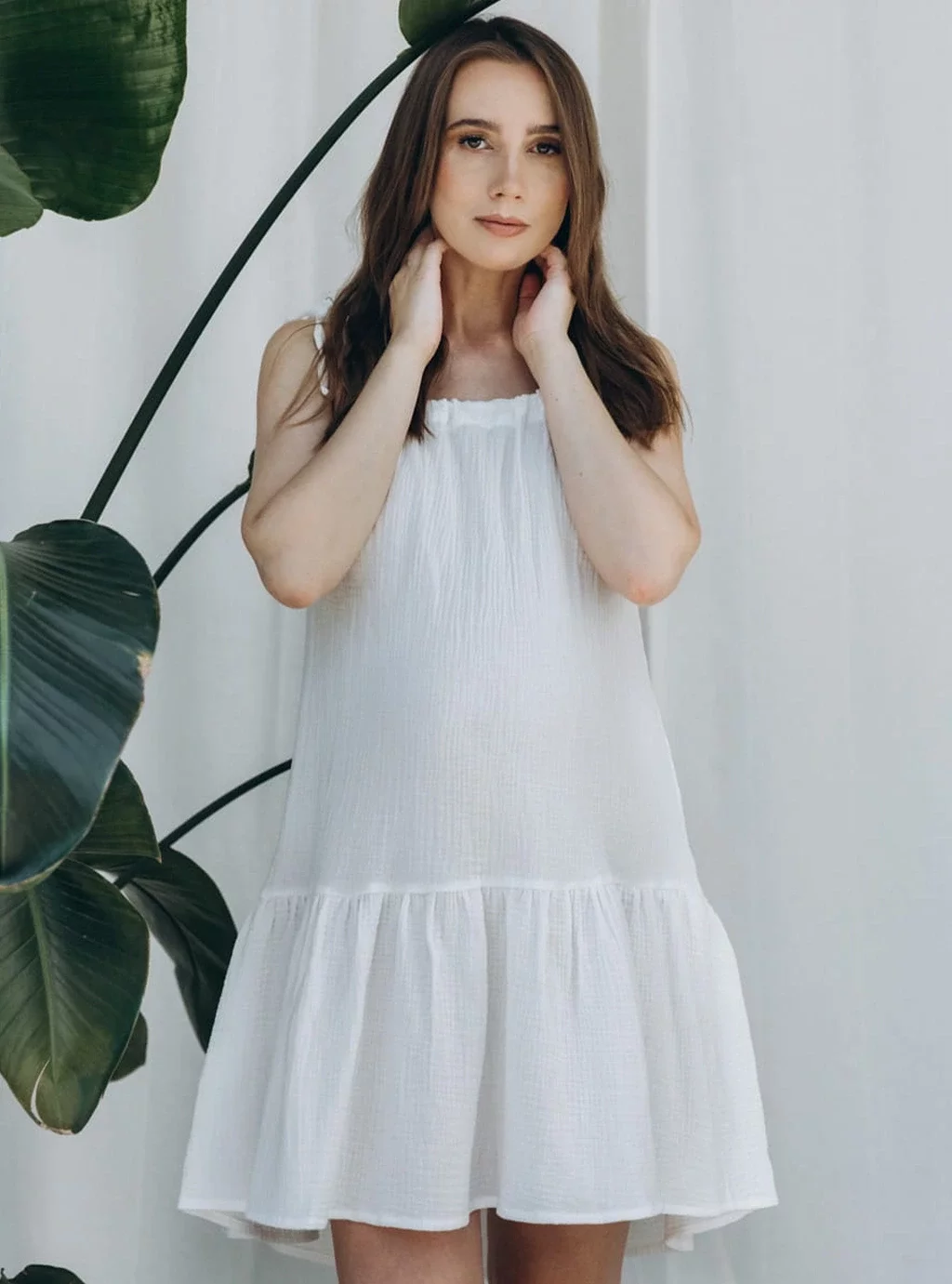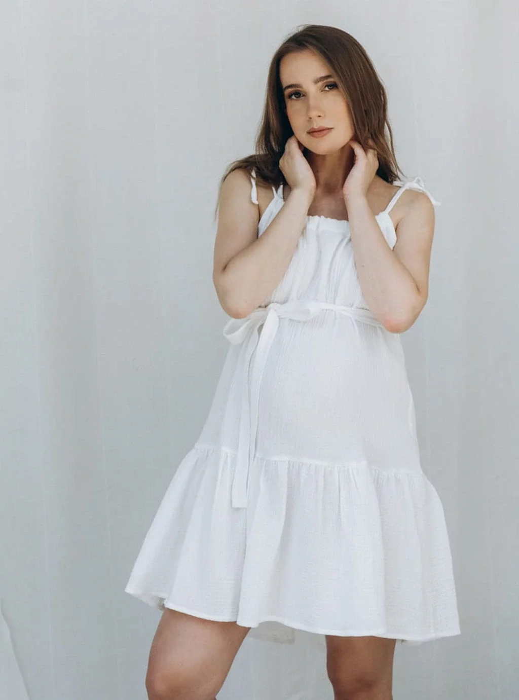 Muślinowa sukienka ciążowa i do karmienia Oversize Hot Summer - Biały