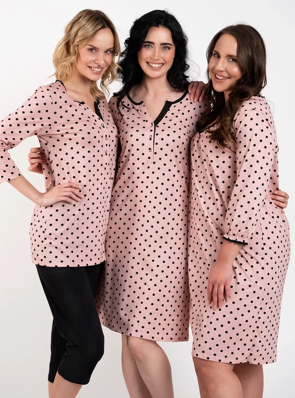 Wybierz damską koszulę nocną MARGO z rękawem 3/4 i wzorem, aby cieszyć się połączeniem stylu, funkcjonalności i komfortu każdej nocy.