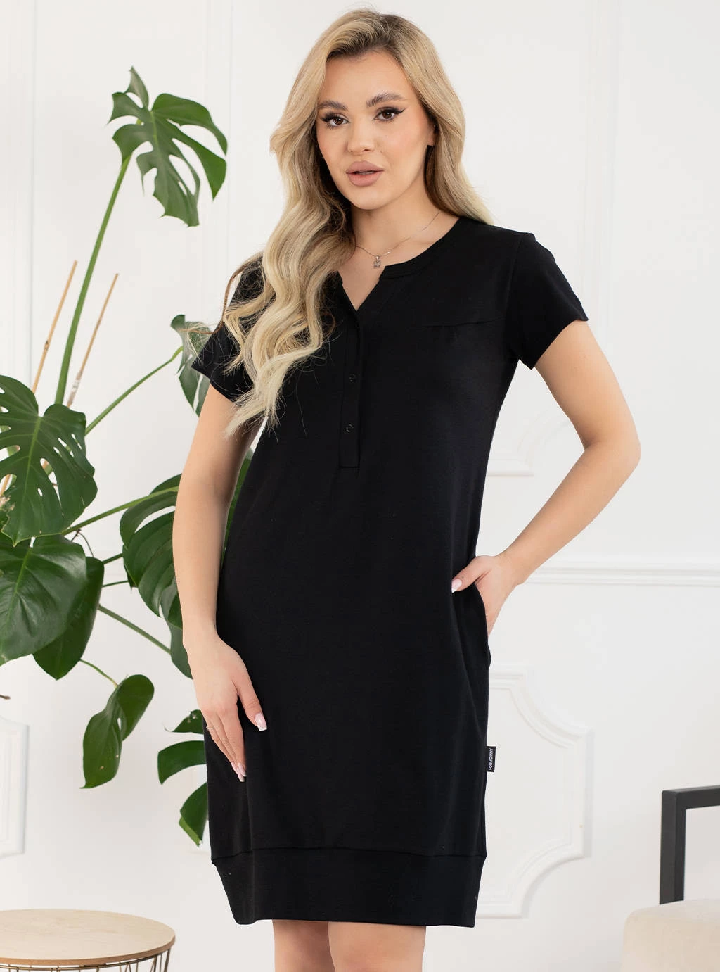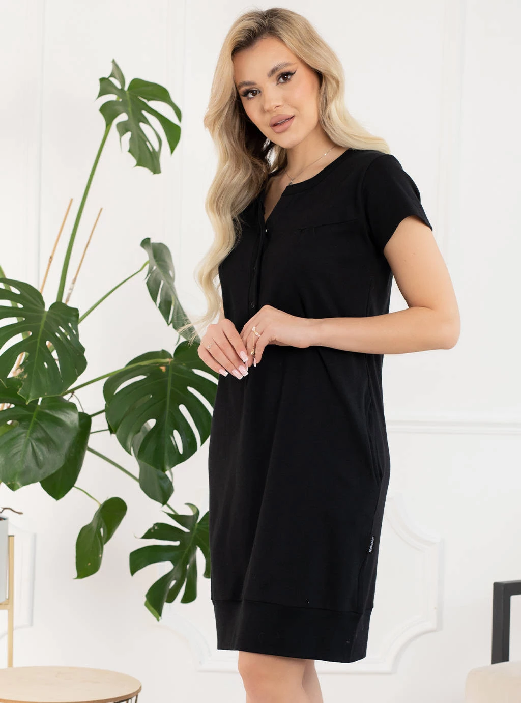 W naszym sklepie internetowym dbamy o to żeby przyszła mama czuła się komfortowo dlatego bardzo ważne jest dla nas z jakiego materiału są wykonane nasze koszule nocne. Czarna koszula do karmienia piersią Sunny może spokojnie zastąpić Twoje dotychczasowe ubrania ciążowe. Koszula do karmienia marki Formommy rozpinana na środku na bezniklowe napy nie uczula i pozwala żeby karmienie dziecka było nie krępujące i wygodne. Delikatne zaszewki górą koszuli Sunny ora bez uciskowy ściągacz dołem nadają jej kształtu uroczej sukienki bombki która ładnie dopasuje się do rosnącego brzuszka. Dodatkowym atutem jaki posiadają te modele koszuli do karmienia i porodu są małe kieszonki w których możesz schować różne drobiazgi ciążowe lub po prostu ogrzać ręce.
