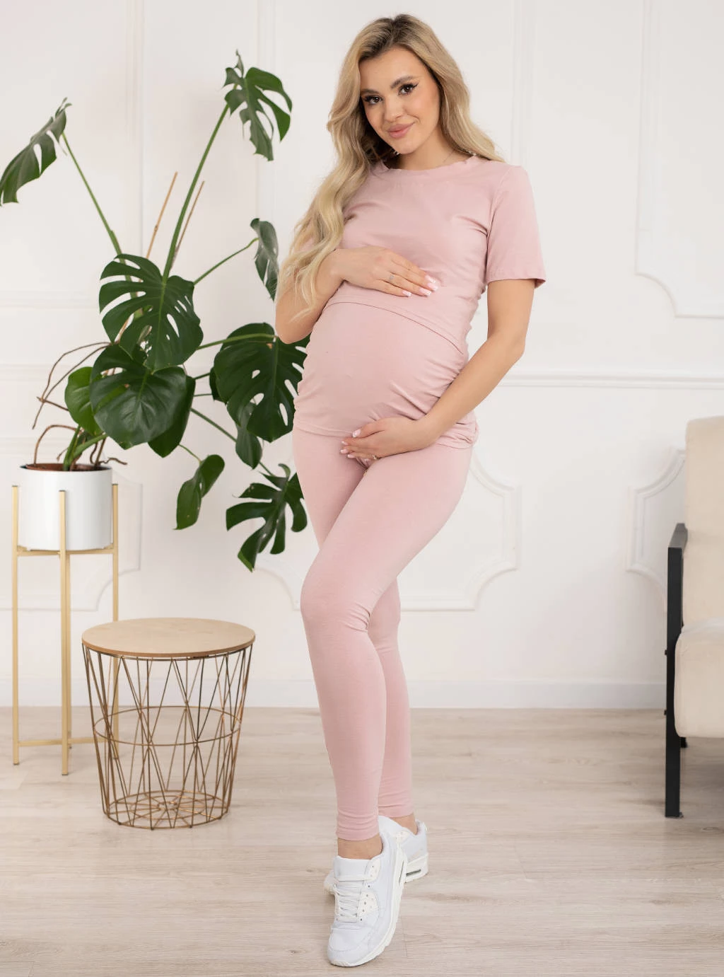 Wyjątkowa bluzka ciążowa w delikatnym pudrowym kolorze. Górą pudrowej tuniki wszyty jest specjalny panel odchylany do góry, dzięki któremu w nie krępujący sposób i łatwo nakarmisz maluszka. Z obu boków rosnącego brzuszka bluzki ciążowe Emma posiadają zaszewki które dopasowują się do brzucha i zmieniającego ciała. Koszulki ciążowe zapewniają Ci wygodę oraz komfort w okresie ciąży i później kiedy karmisz piersią. Całe bluzki ciążowe są długości tuniki, więc nie odsłaniają brzuszka ani ciała.