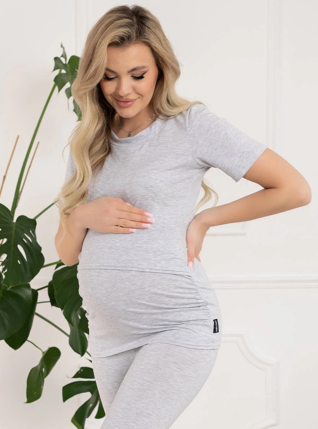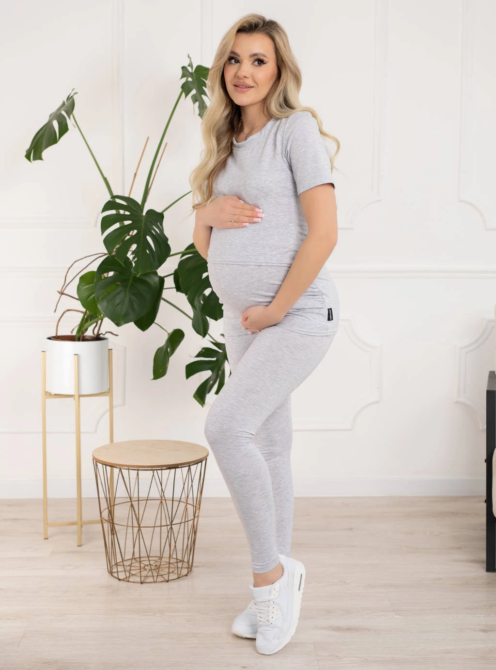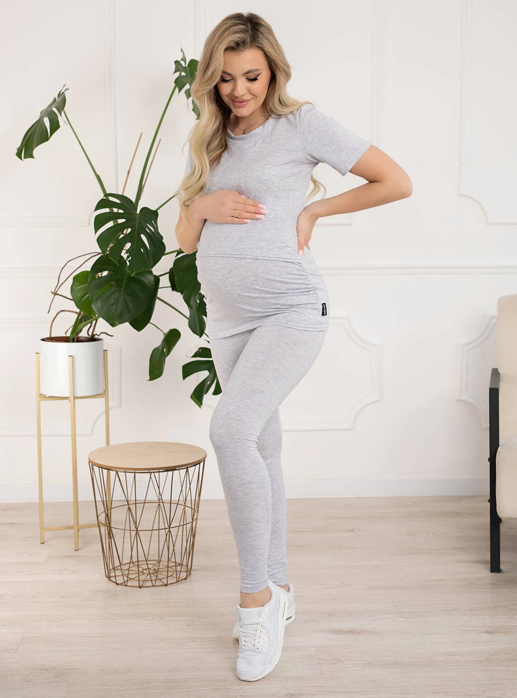 Prosta klasyczna odzież ciążowa w odcieniach zawsze modnej szarości. Górą koszulki wszyty specjalny panel odchylany do góry, dzięki któremu dyskretnie i swobodnie nakarmisz dziecko. Z boków bluzki ciążowe Emma posiadają zaszewki które dopasowują się do rosnącego brzuszka i zapewniają wygodę oraz komfort w okresie ciąży i później kiedy karmisz piersią. Cała bluzka w klimacie tuniki więc dość długa nie odsłania brzucha ani ciała.