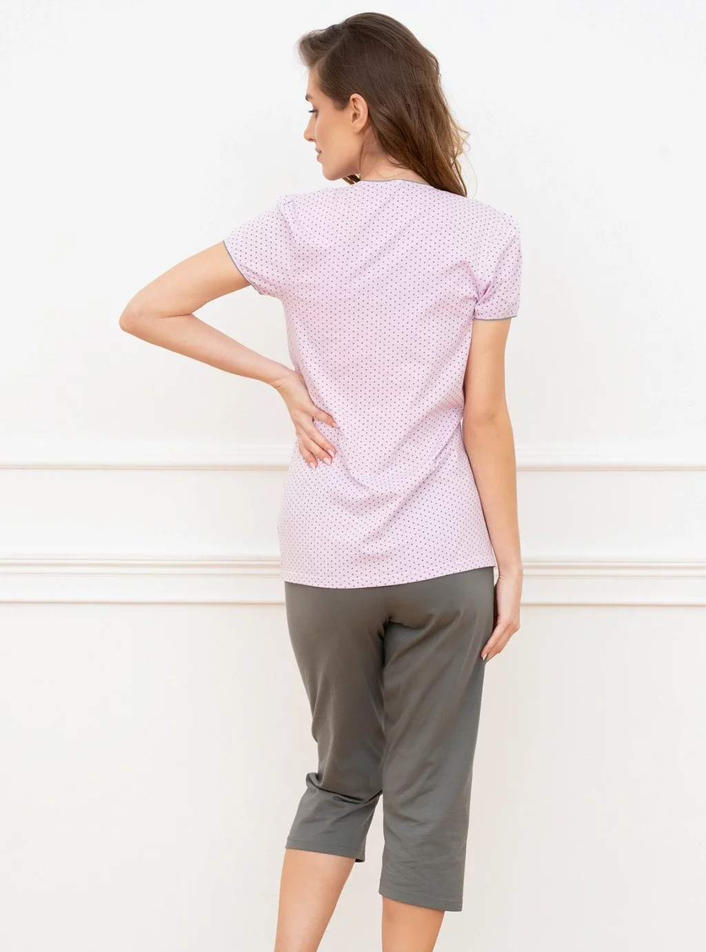 Felicita piżama krótki rękaw, 3/4 spodnie różowy/szary