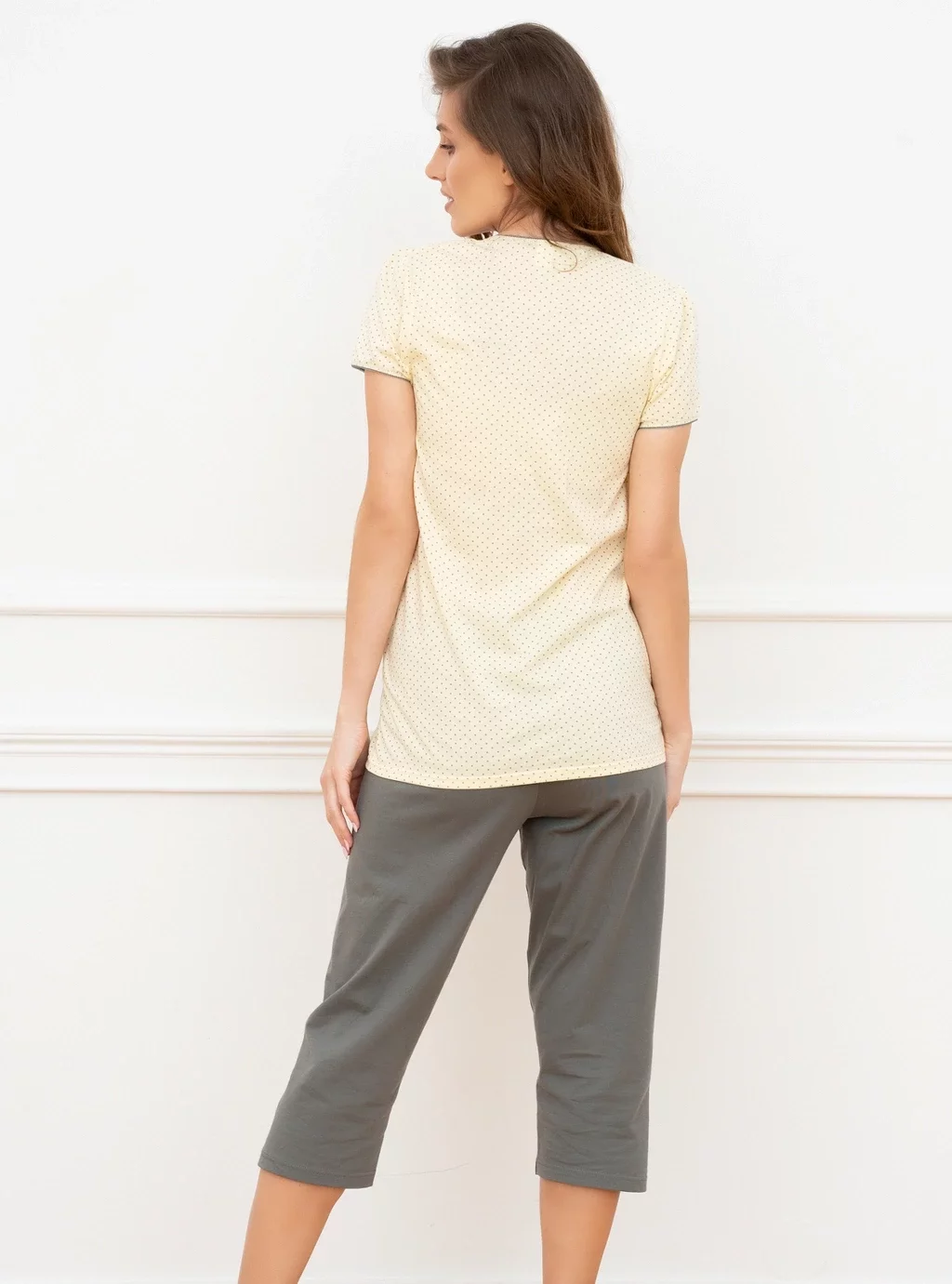 Felicita piżama krótki rękaw, 3/4 spodnie żółty/szary