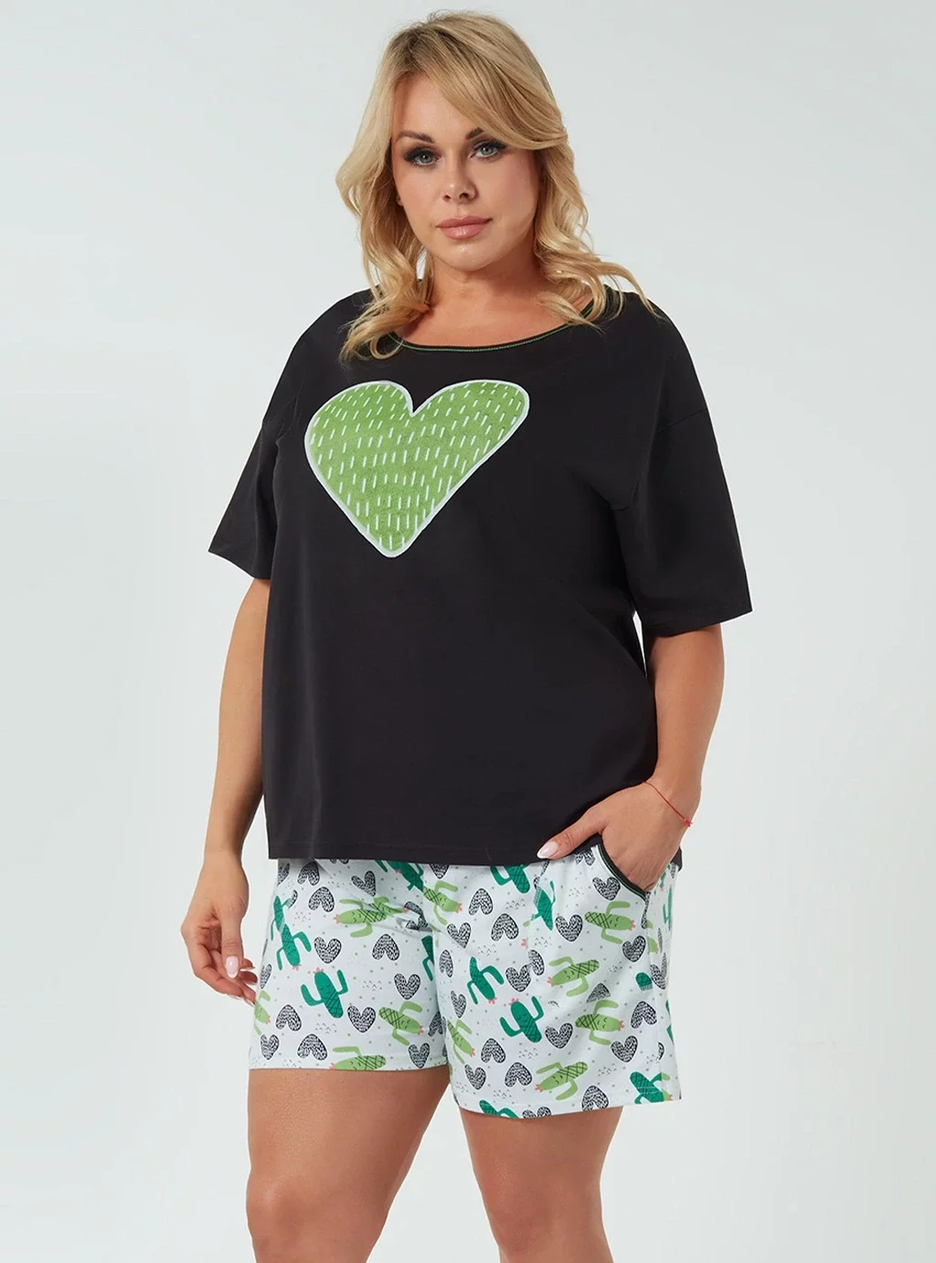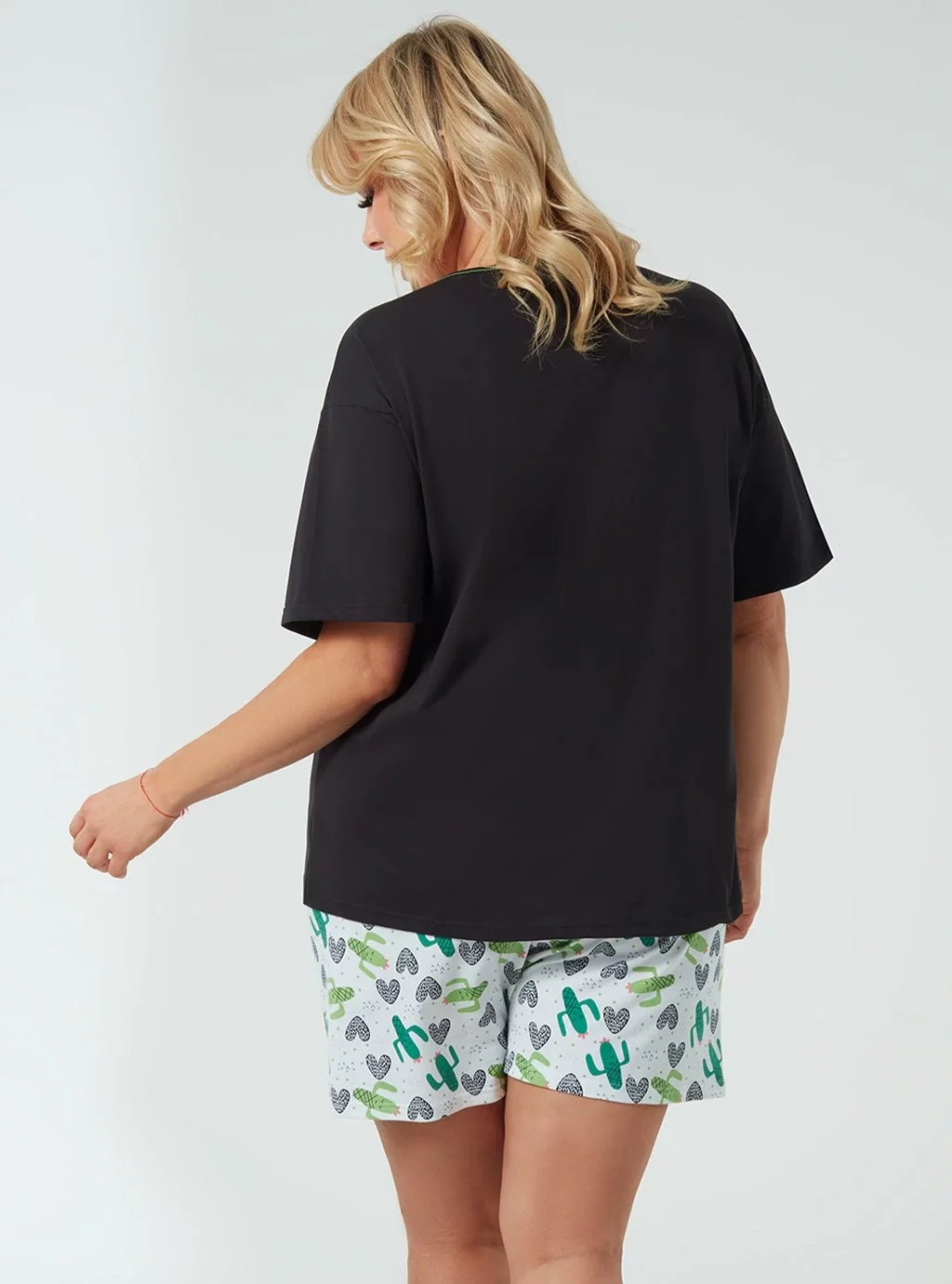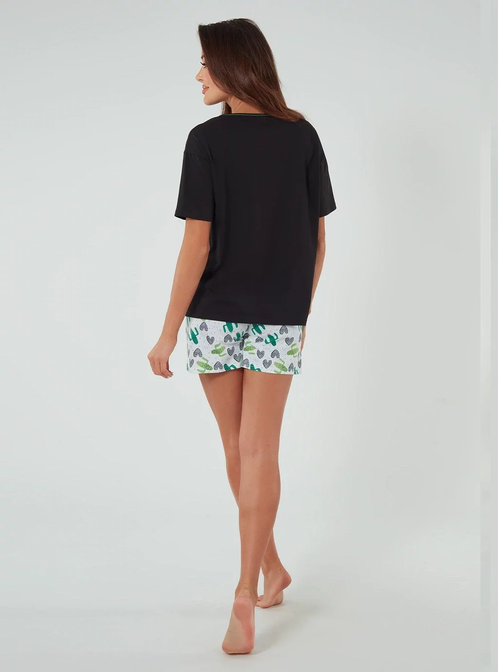 Picos piżama damska krótki rękaw, krótkie spodnie czarny/druk