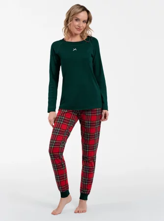 Tess piżama damska długi rękaw, długie spodnie zielony/druk