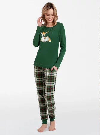 Zonda piżama damska długi rękaw, długie spodnie zielony/druk