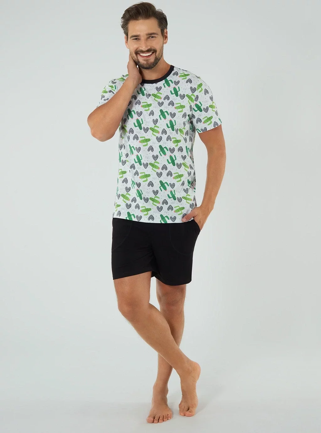 Picos piżama męska krótki rękaw, krótkie spodnie druk/czarny