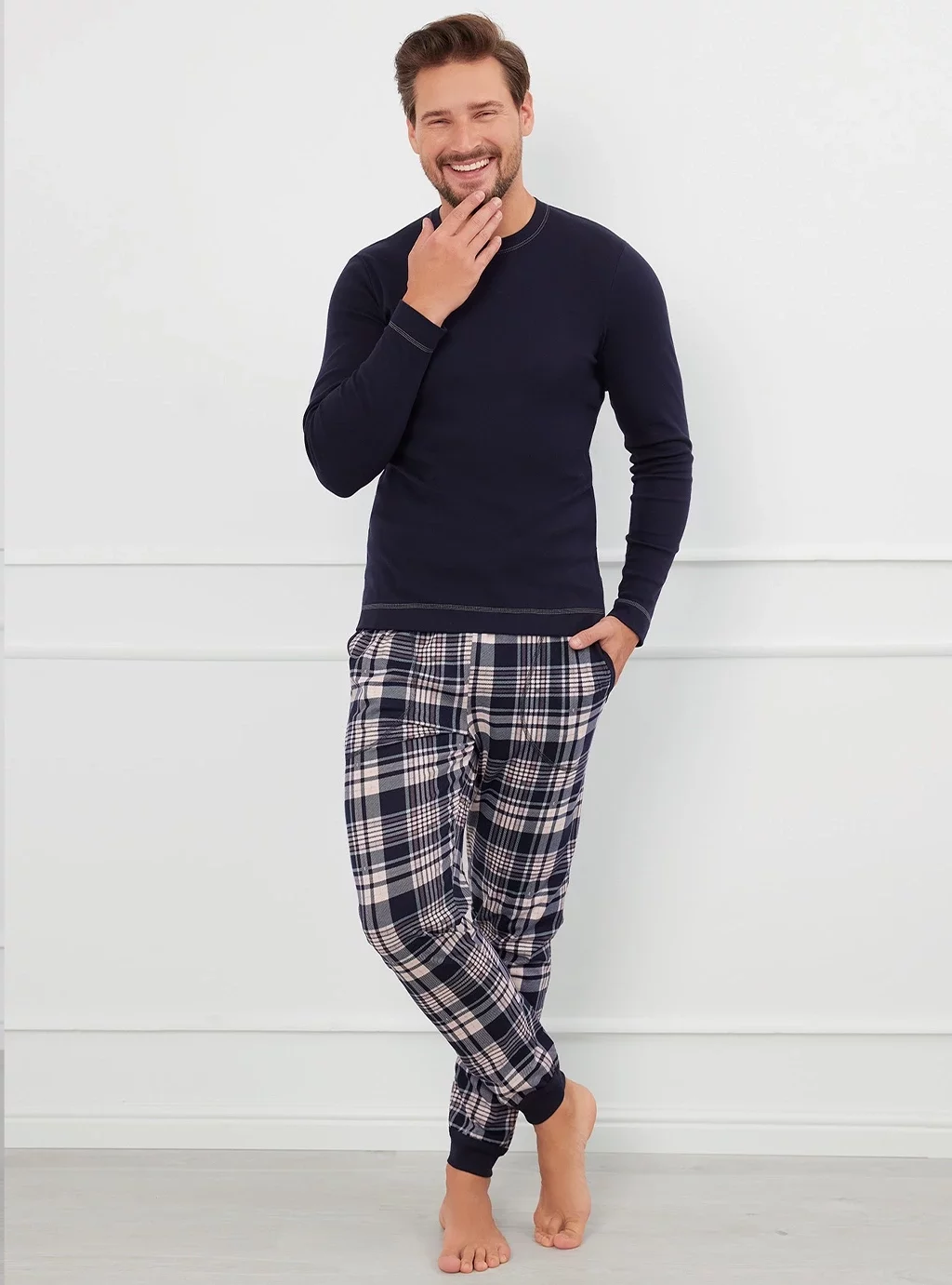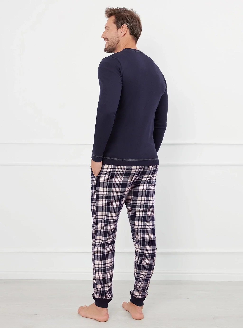 Brit piżama męska długi rękaw, długie spodnie - granatowy