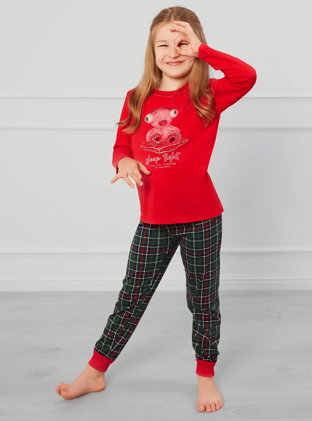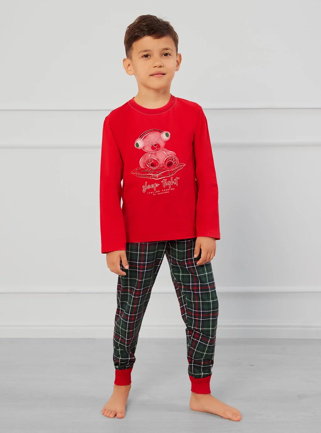 Fogo piżama dziecięca długi rękaw, długie spodnie - czerwone