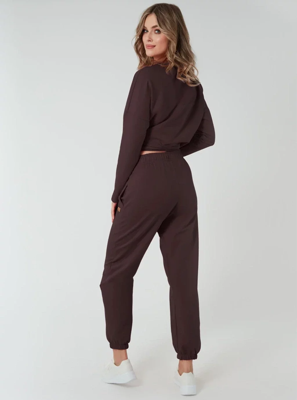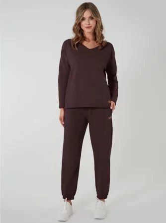 Damska bluza dresowa o luźnym kroju i długich rękawach, wykonana z miękkiej bawełny z dodatkiem 5% elastanu, łączy styl z wyjątkową wygodą noszenia. Dekolt w serek z subtelnym wykończeniem dodaje jej eleganckiego akcentu, nadając minimalistycznemu projektowi nutę wyrafinowania. Ta uniwersalna bluza świetnie komponuje się ze spodniami lub spódnicami z tej samej kolekcji, tworząc zestawy idealne zarówno na co dzień, jak i na bardziej formalne okazje. To doskonały wybór dla osób ceniących połączenie komfortu z eleganckim stylem w jednym ubraniu.