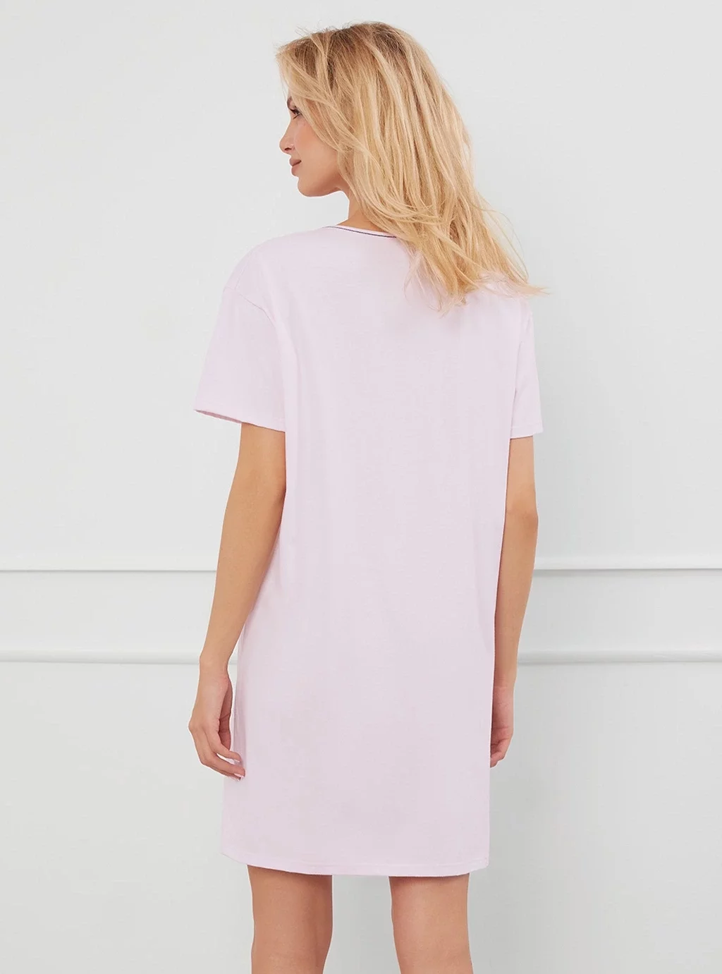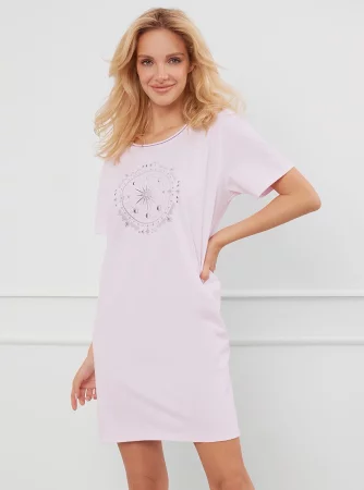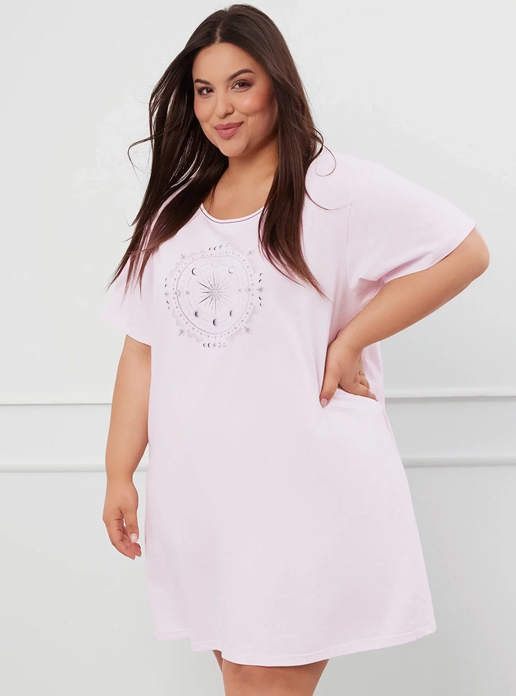 Ta koszula nocna to prawdziwa gratka dla miłośniczek kosmosu i stylowych, komfortowych ubrań. Jej galaktyczny motyw dodaje odrobinę magii, a zarazem wpisuje się w najnowsze trendy mody. Wygodny, luźny fason sprawia, że jest idealna do relaksu, zapewniając pełną swobodę ruchów. Okrągły dekolt z kontrastową lamówką to subtelny, ale efektowny detal, który nadaje jej unikalnego charakteru. Dodatkowo bawełna, z której jest wykonana, to materiał o doskonałych właściwościach – miękki, przyjemny w dotyku i bezpieczny dla skóry.