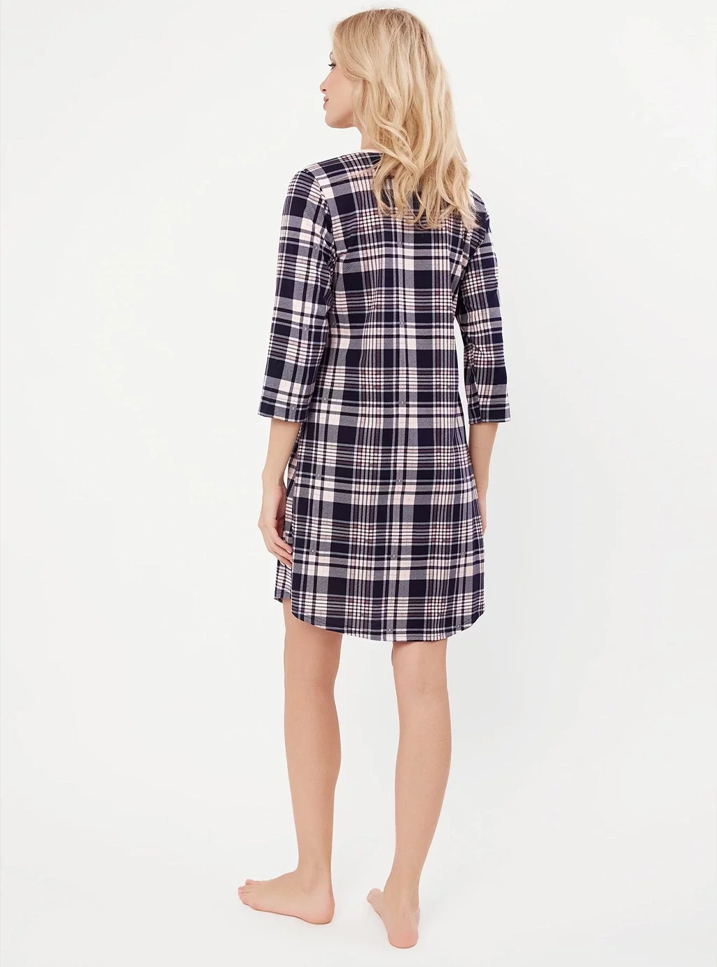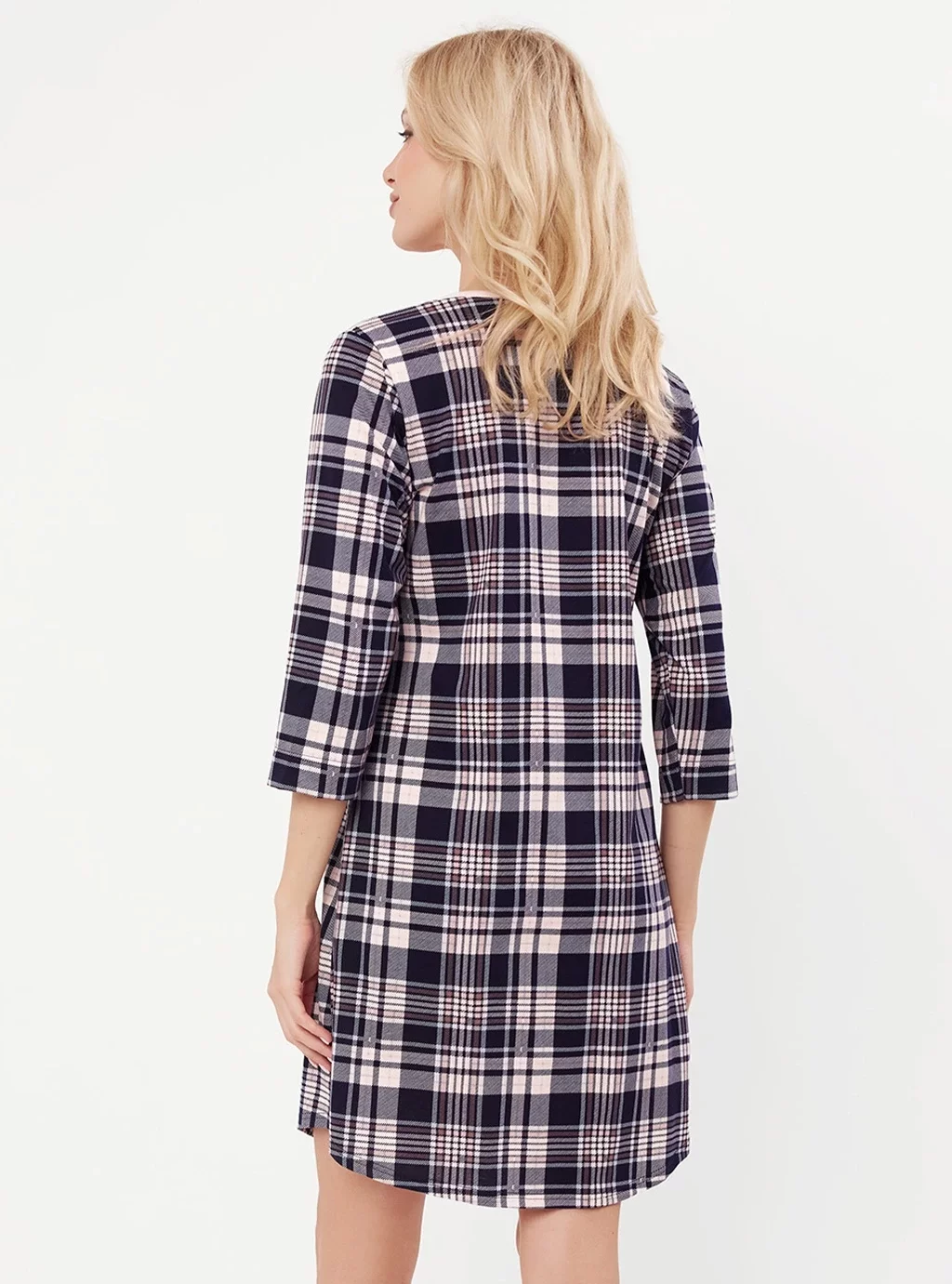 Ta koszula nocna to doskonały wybór dla tych, które cenią sobie wygodę i komfort snu. Wykonana w 100% z bawełny, zapewnia miękkość, przyjemność w dotyku oraz doskonałą oddychalność, co pozwala na spokojny i efektywny sen. Klasyczny, luźny krój gwarantuje pełną swobodę ruchów, a okrągły dekolt oraz zapięcie polo na napy ułatwiają zakładanie i zdejmowanie. Subtelnie zaokrąglony dół nadaje jej nowoczesnego, modnego charakteru, dzięki czemu koszula nocna wygląda nie tylko praktycznie, ale i stylowo. Bawełniany materiał zapewnia również komfort termiczny – idealnie sprawdzi się o każdej porze roku. Dostępność rozmiarów od S do XXL sprawia, że jest to wybór dla każdej kobiety.