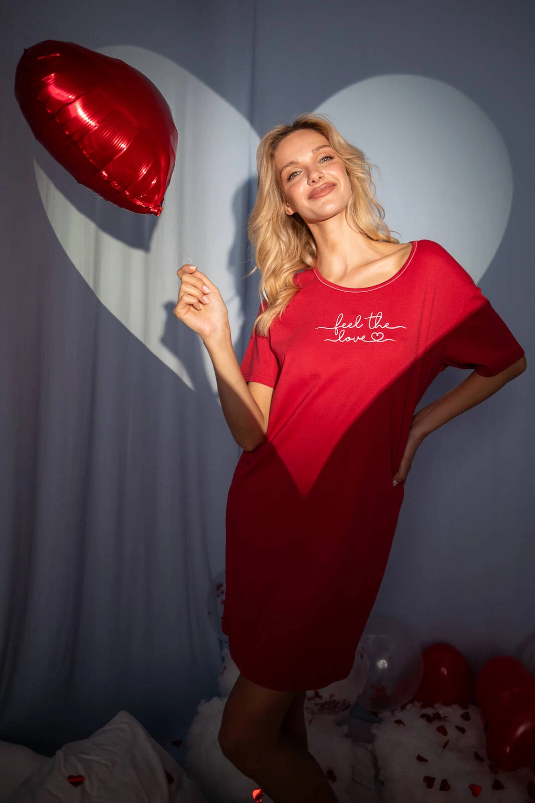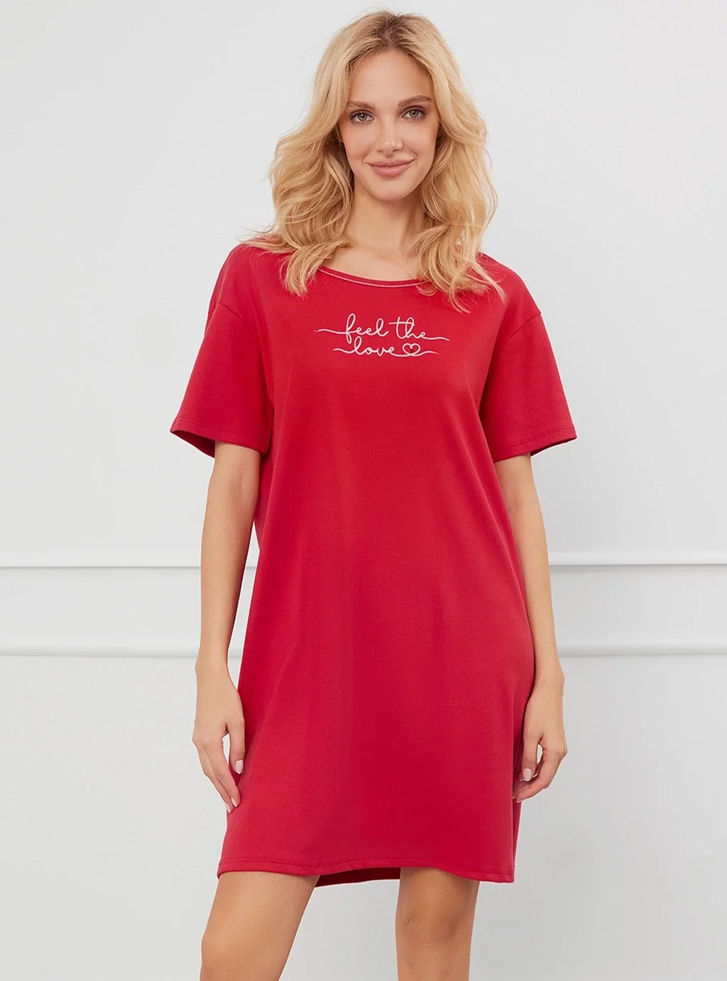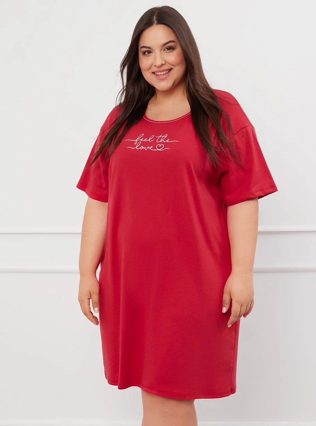 Ta damska koszula nocna to idealny wybór dla osób, które stawiają na wygodę i swobodę w swojej nocnej garderobie. Luźny, oversizowy fason i młodzieżowy charakter sprawiają, że koszula jest nie tylko komfortowa, ale także modna. Okrągły dekolt, wydłużona linia ramion oraz krótkie rękawy zapewniają luźny, lekki wygląd, idealny do wypoczynku. Kontrastowy nadruk dodaje całości wyrazistego stylu, a bawełniany materiał (100%) dba o komfort.