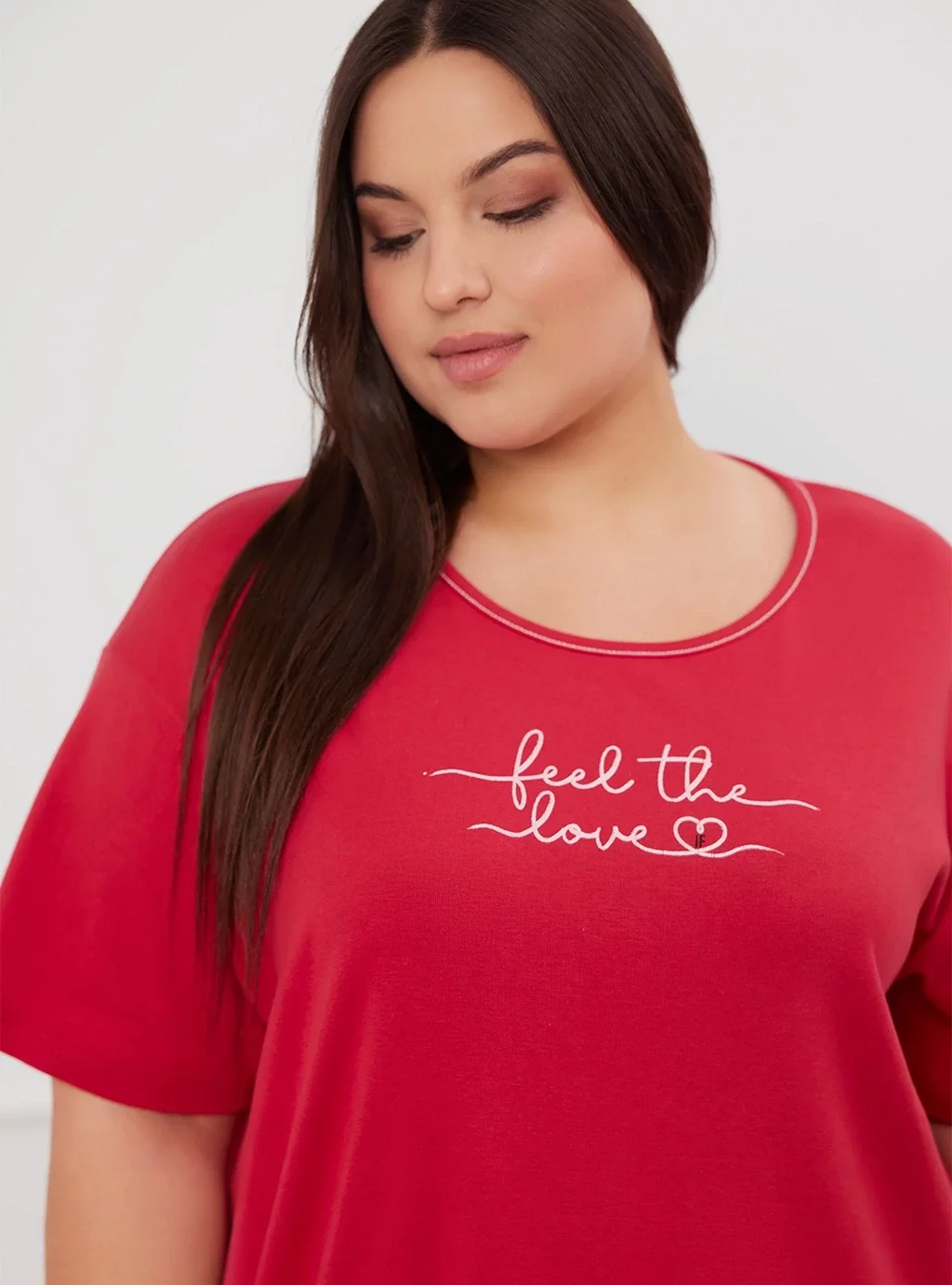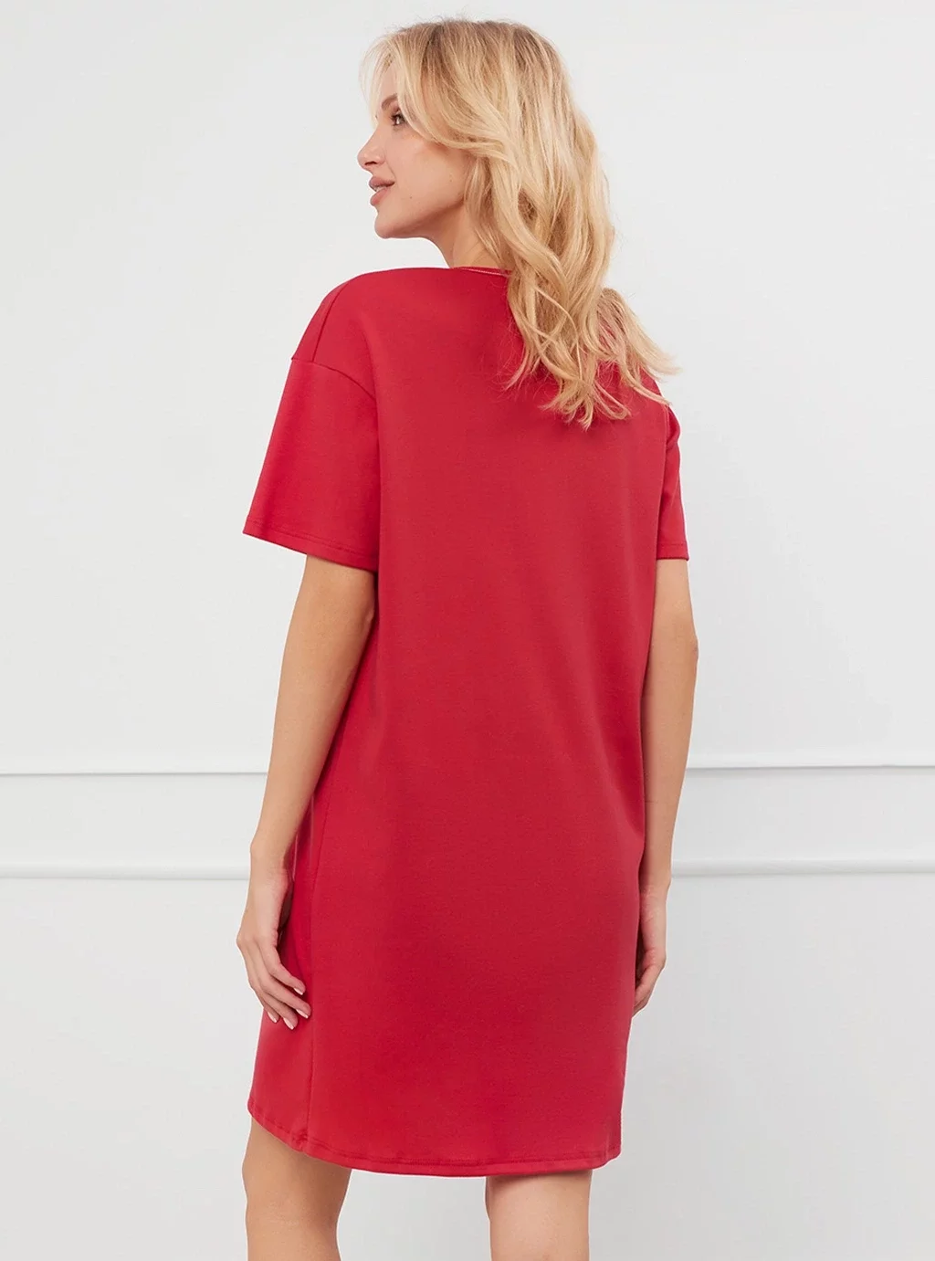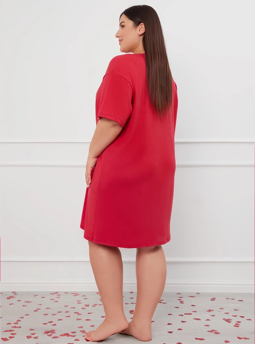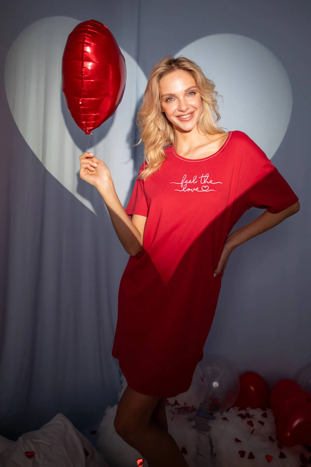 Ta damska koszula nocna to idealny wybór dla osób, które stawiają na wygodę i swobodę w swojej nocnej garderobie. Luźny, oversizowy fason i młodzieżowy charakter sprawiają, że koszula jest nie tylko komfortowa, ale także modna. Okrągły dekolt, wydłużona linia ramion oraz krótkie rękawy zapewniają luźny, lekki wygląd, idealny do wypoczynku. Kontrastowy nadruk dodaje całości wyrazistego stylu, a bawełniany materiał (100%) dba o komfort.