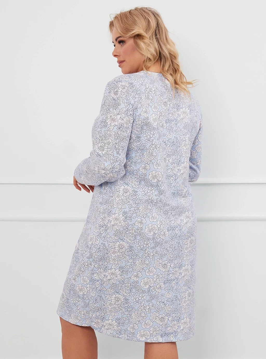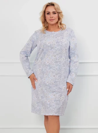 Urokliwy nadruk w kwiaty wprowadza romantyczny akcent, a materiał z 100% dzianiny dresowej zapewnia optymalne ciepło i miękkość, idealną na chłodniejsze dni. To koszula, która łączy funkcjonalność z elegancją, sprawdzając się w roli komfortowego ubrania do spania lub relaksu w domowym zaciszu.