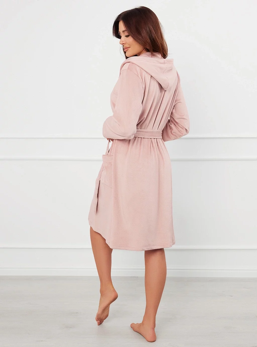 Akara szlafrok damski długi rękaw - pudrowy