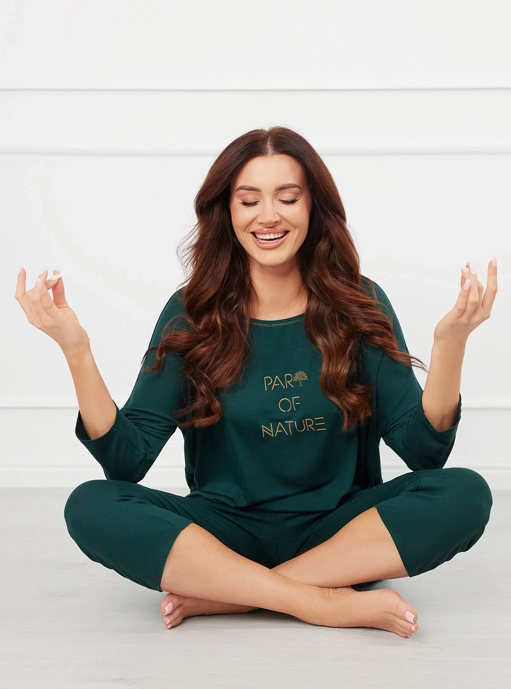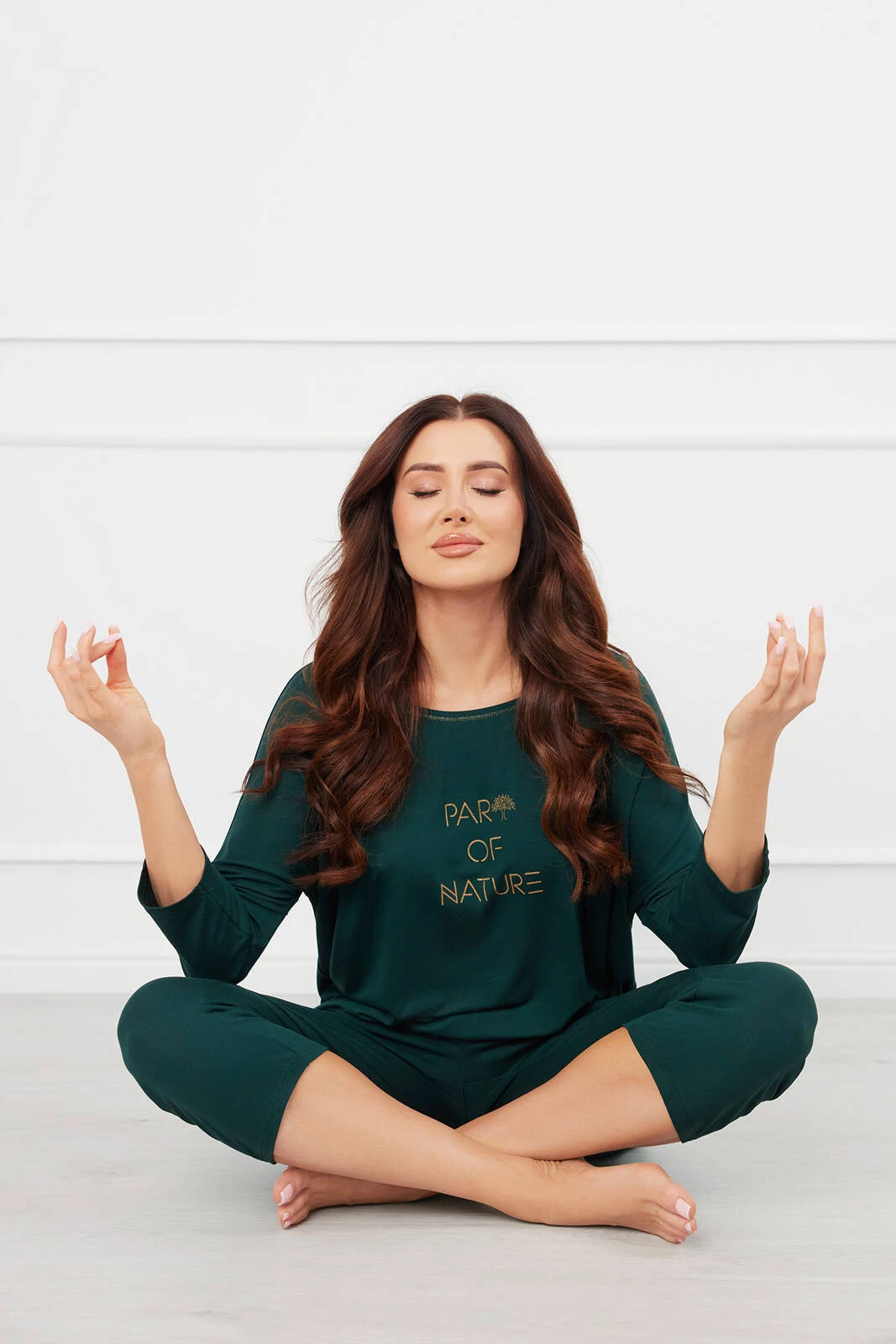 Natura piżama damska 3/4 rękaw - zielona