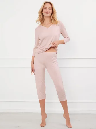 Puntini piżama damska 3/4 rękaw - pudrowy
