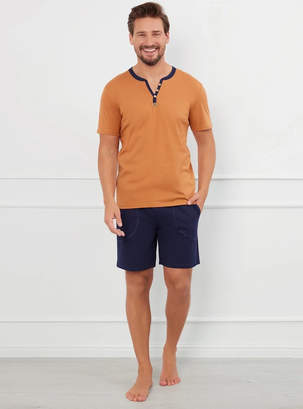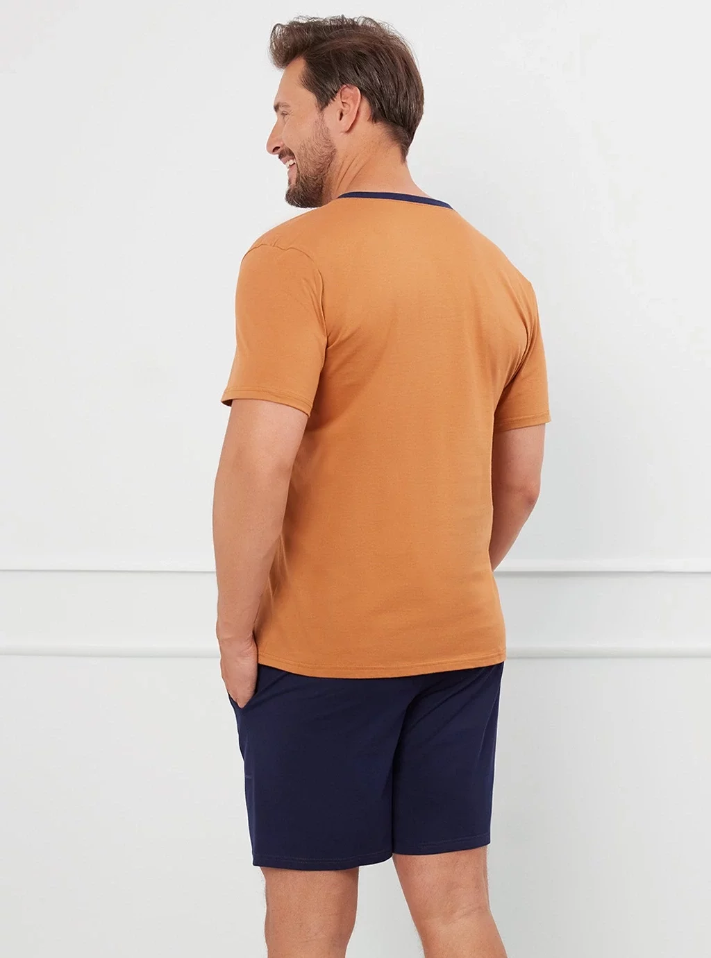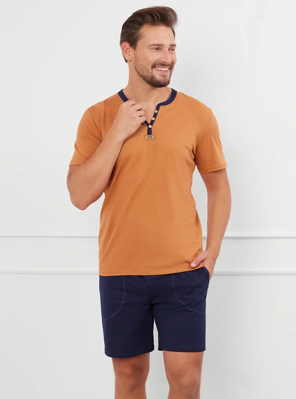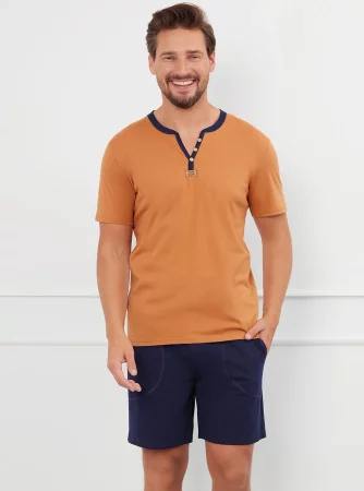 Piżama męska Juliusz krótki rękaw, krótkie spodnie - Koniak/granat