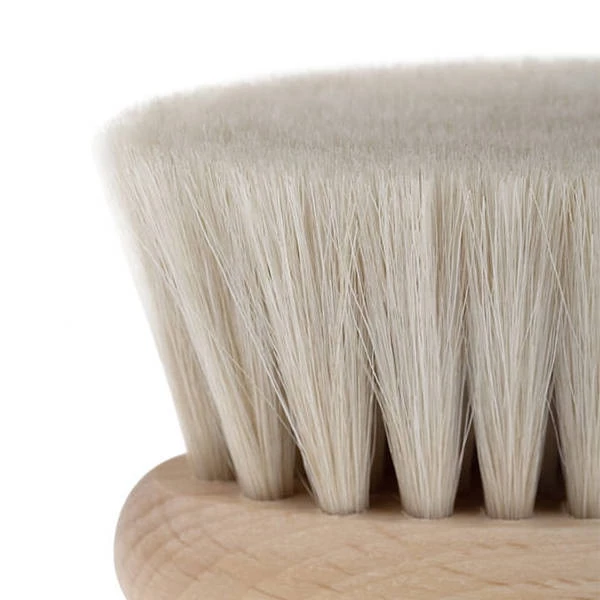 Pierwsza szczotka do włosów przeznaczona dla najmłodszych dzieci. Wykonana z naturalnego koziego włosia z drewnianą ( drewno bukowe) rączką o kształcie elipsy. Rozmiar szczotki jest idealny do małej główki niemowlaka. Delikatne włosie jest idealne dla wrażliwej skóry, nie elektryzuje włosów. Masaż wykonany tą szczotką doskonale wycisza i relaksuje, jest przyjemny dla mamy i dziecka. Cały produkt wykonany jest w Polsce. Szczotkę polecamy czyścić na sucho, poprzez wyczesywanie grzebieniem. Unikać kontaktu szczotki z wodą.