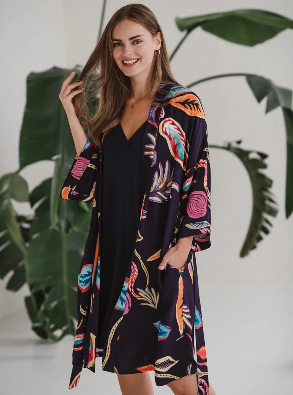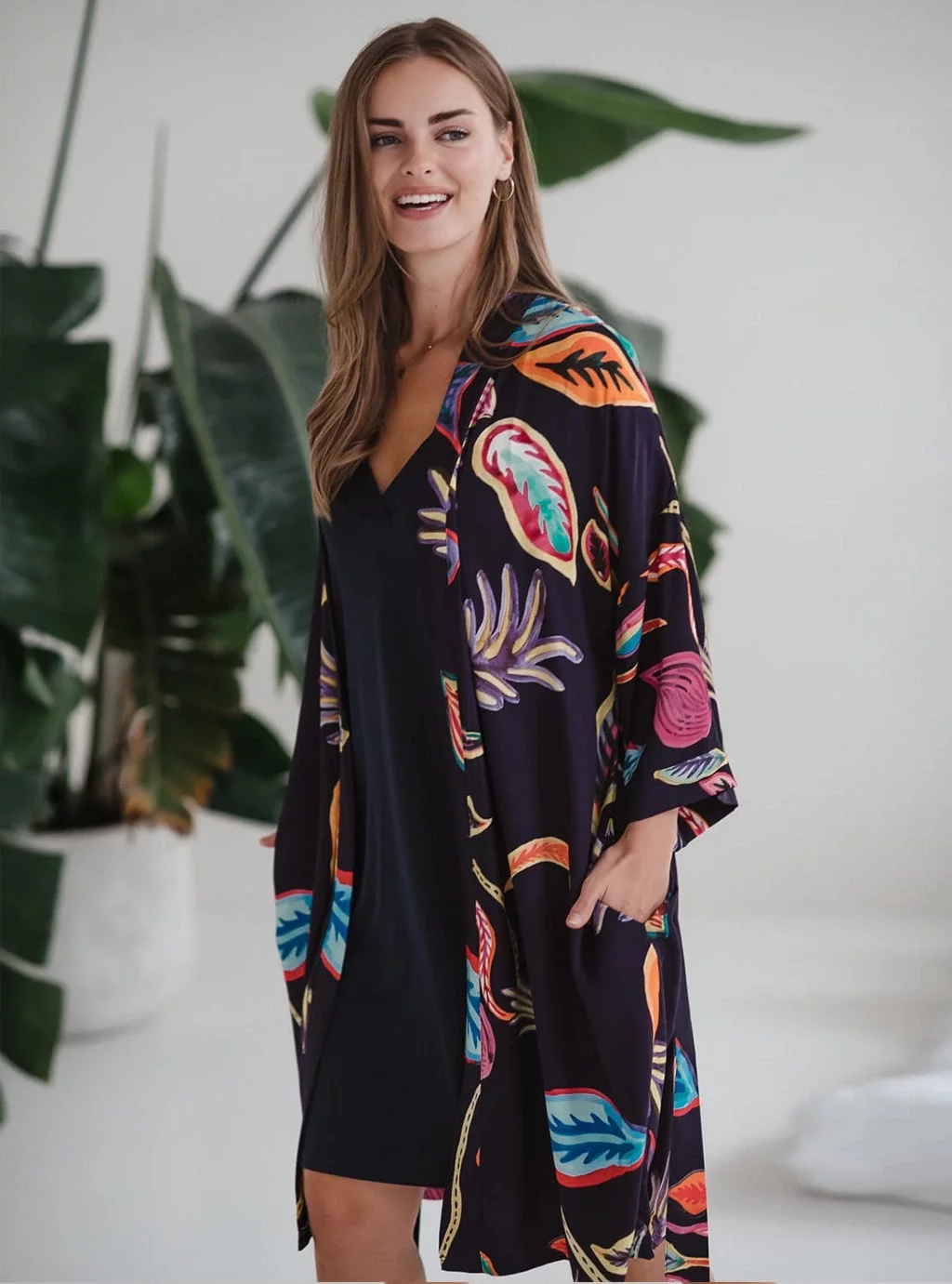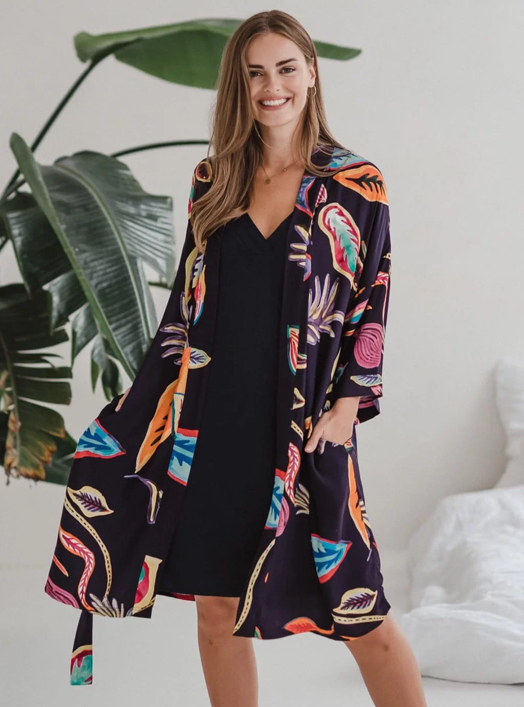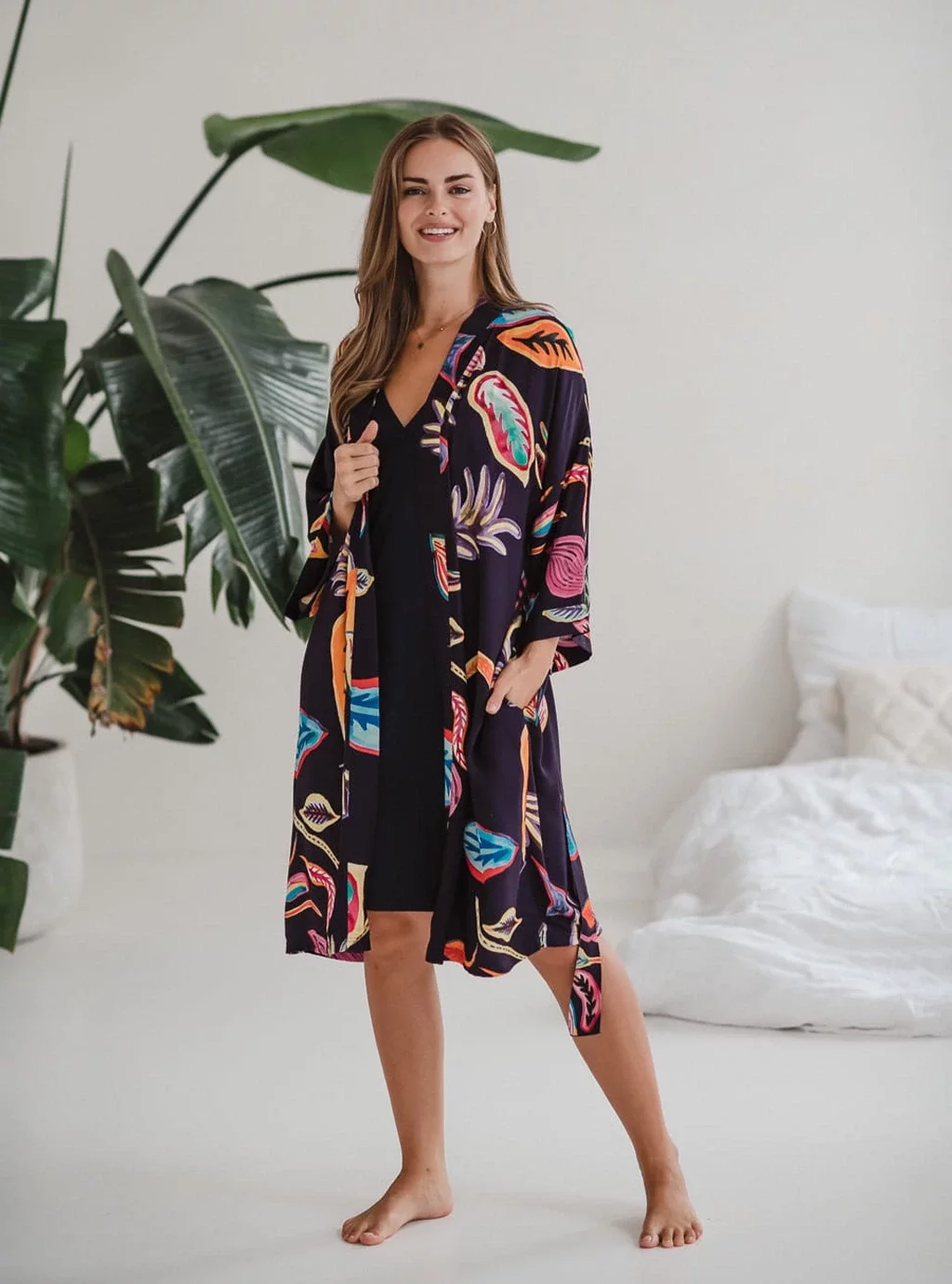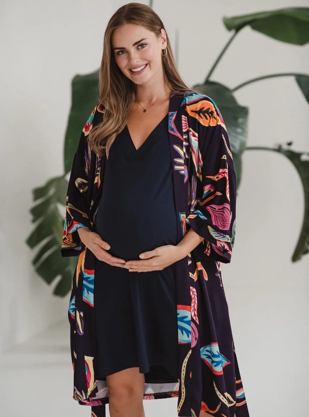 Ten wyjątkowy szlafrok z bambusa to doskonały wybór dla każdej mamy, której zależy na połączeniu wygody i elegancji. Wykonany z niezwykle miękkiej i oddychającej tkaniny bambusowej, szlafrok otula ciało delikatnością, idealnie sprawdzając się zarówno w okresie ciąży, jak i po porodzie. Jego krój kimono pozwala na swobodne dopasowanie się do sylwetki, a kobiecy print ożywia, dodając energii i pięknie podkreślając kobiecość.