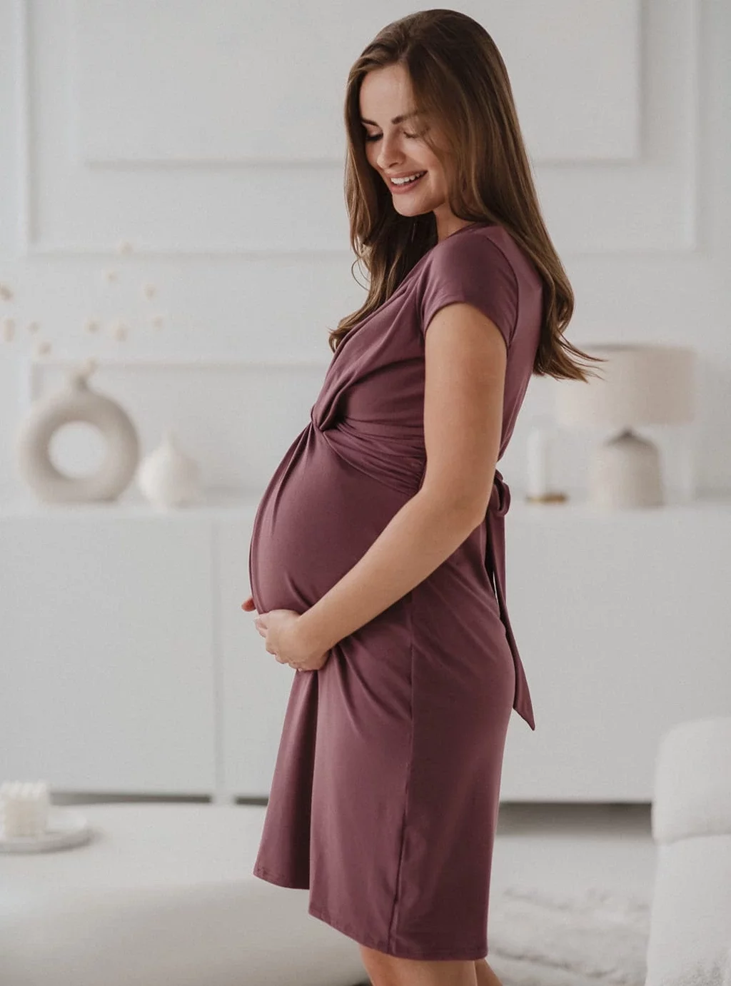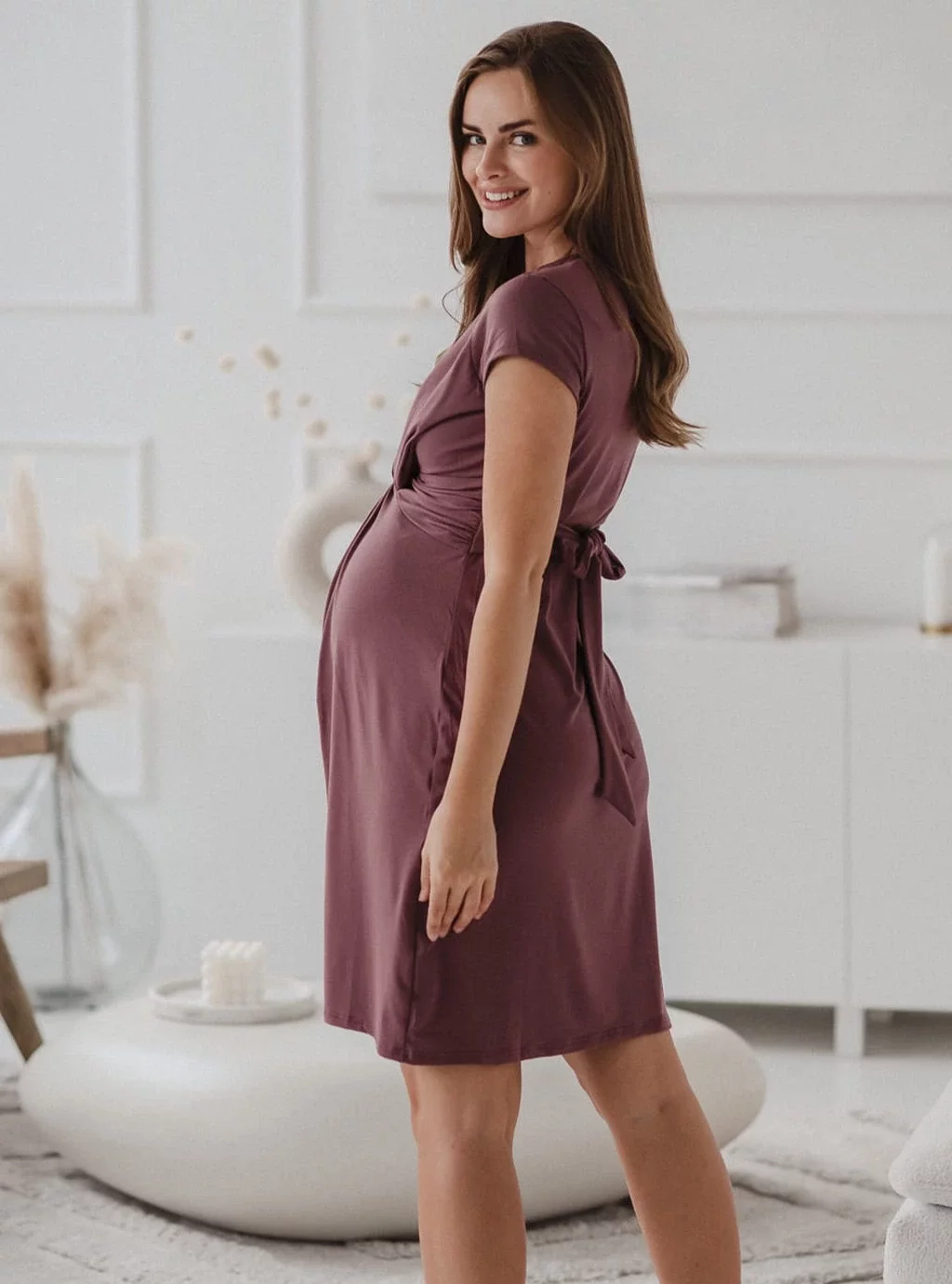 Sukienka ciążowa i do karmienia Loop krótki rękaw rose brown