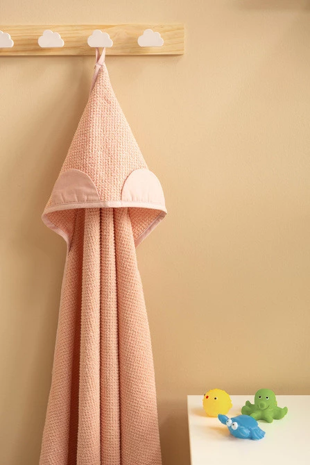 Okrycie kąpielowe z kapturkiem z uszkami jest produktem który idealnie sprawdzi się, aby szczelnie owinąć dziecko po kąpieli. Jako bazę wykorzystaliśmy 100% bawełnę frotte w delikatnych kolorach. Dzięki zastosowaniu wyjątkowego splotu, okrycie przypomina tkaniny typu krepa, dzięki czemu jest ono jeszcze bardziej miękkie, przyjemniejsze w dotyku, a także bardziej chłonne. Obszerne kapturki ozdobiliśmy elegancką bawełną z nadrukami. Postawiliśmy na duży rozmiar 100×100cm, aby owinięcie dziecka było jeszcze łatwiejsze.