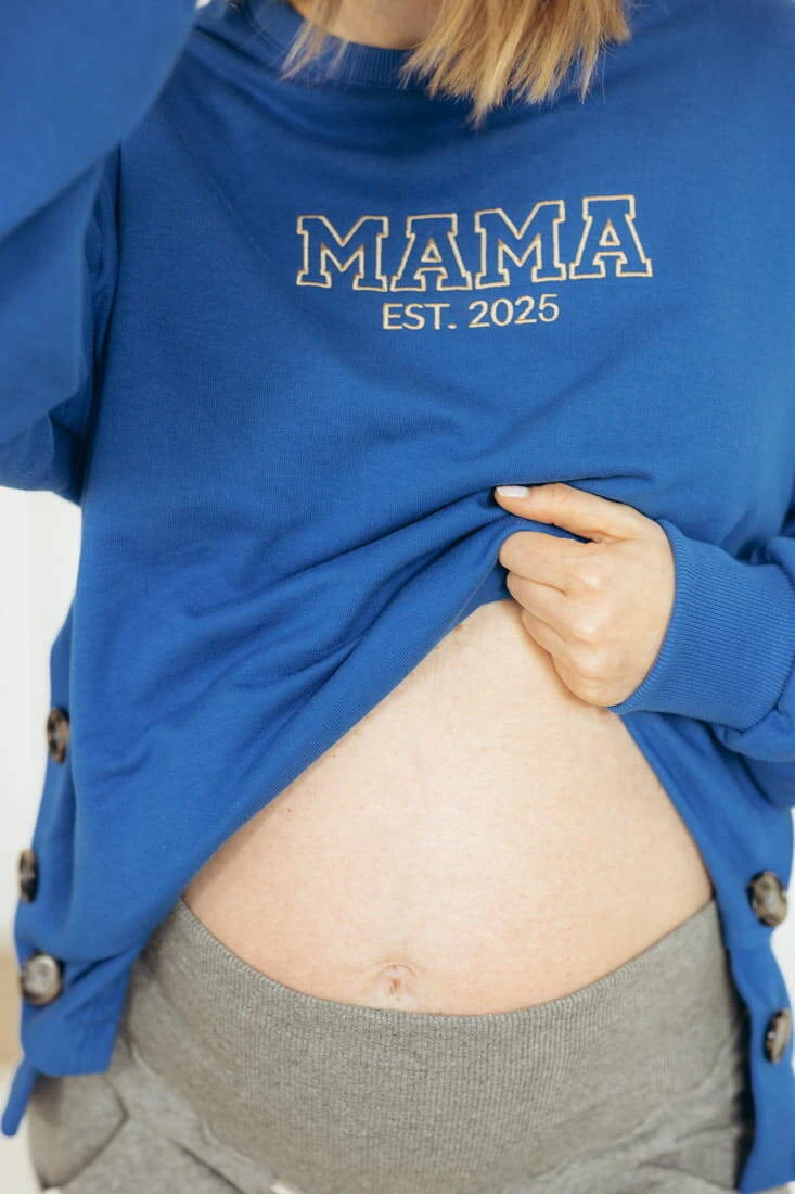 Bluza ciążowa i do karmienia MAMA EST. 2025 - Niebieska
