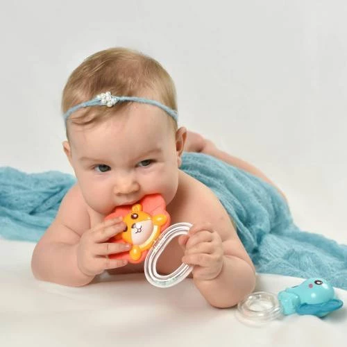 Grzechotka z gryzakiem Lew posiada silikonowe elementy z wypustkami, niosącymi ulgę ząbkującemu maluchowi. Została zaprojektowana specjalnie dla najmłodszych dzieci. Wykonana z trwałych i bezpiecznych materiałów. Nie posiada ostrych krawędzi. Produkt całkowicie wolny od bisfenolu A (0% BPA). Dzięki ciekawej kolorystyce wspomaga rozwój koordynacji wzrokowo-ruchowej dziecka. Specjalnie dobrany kształt sprawia, że grzechotko-gryzak jest wygodny do uchwycenia i utrzymania w małych rączkach.