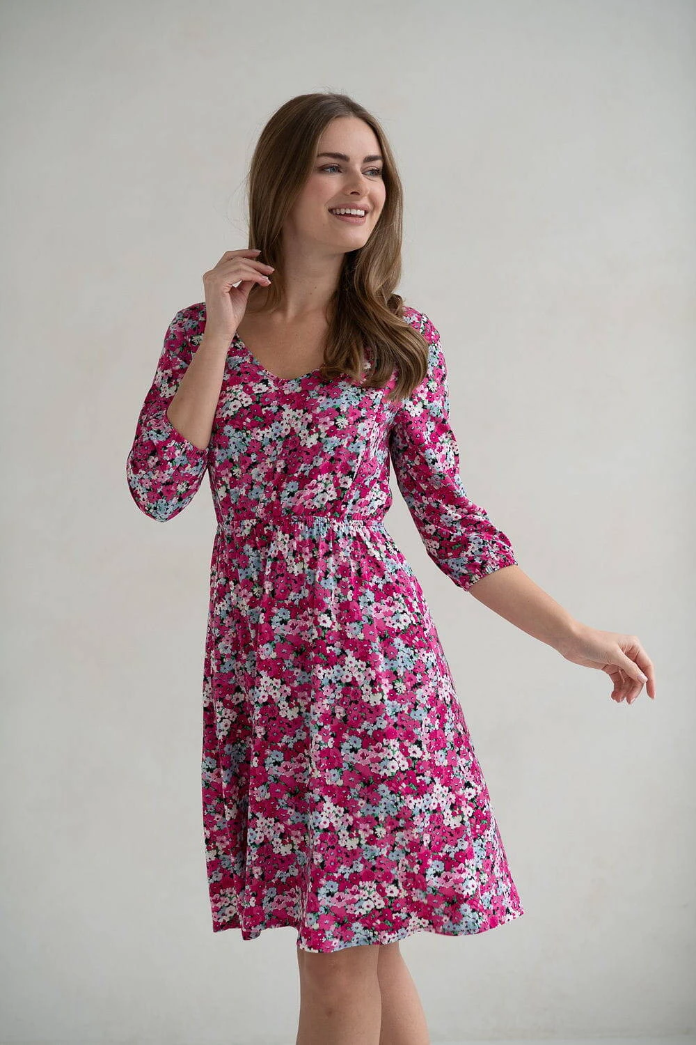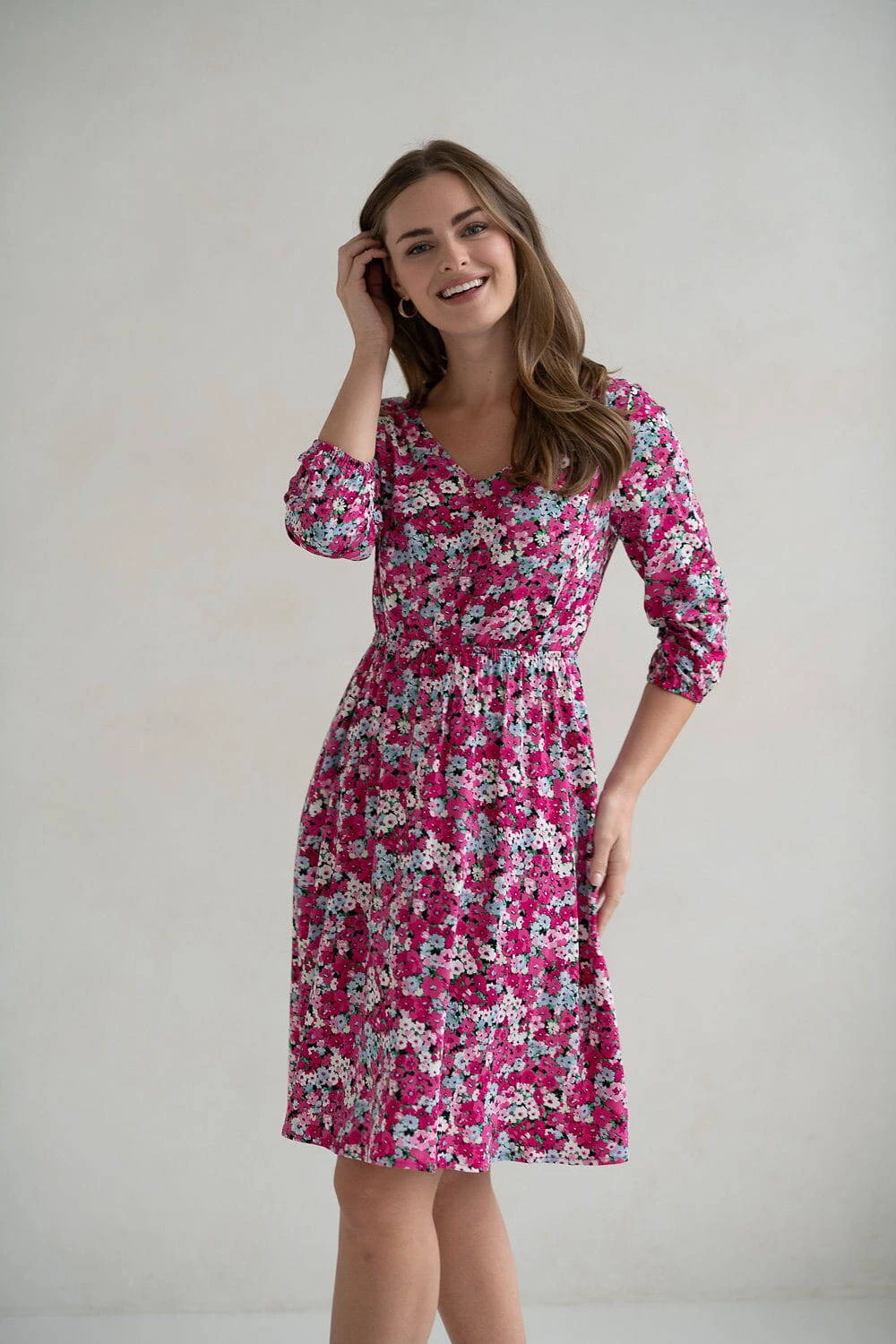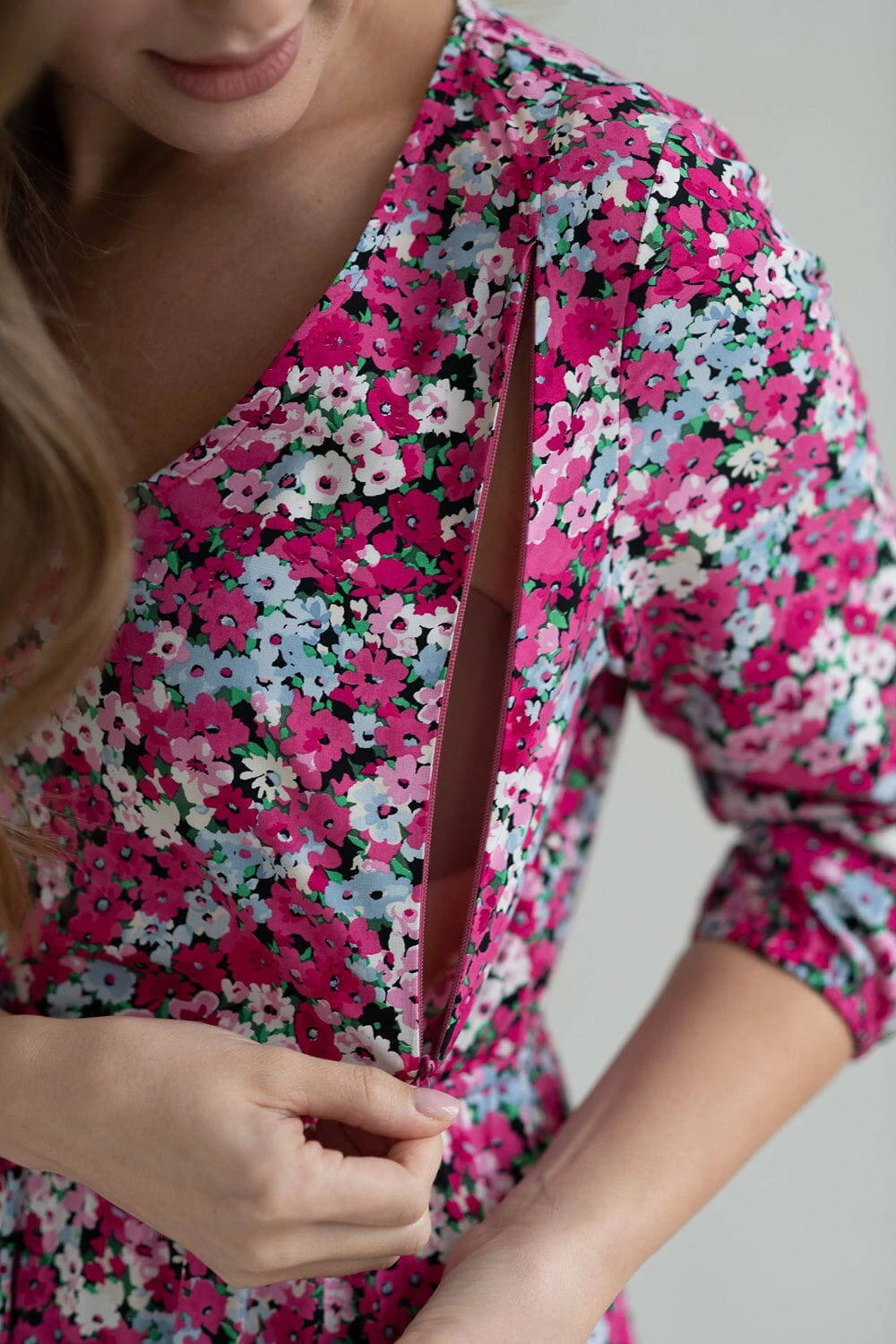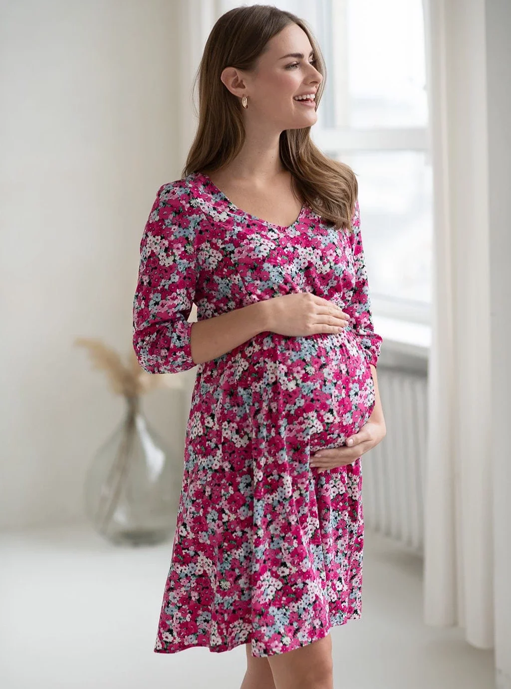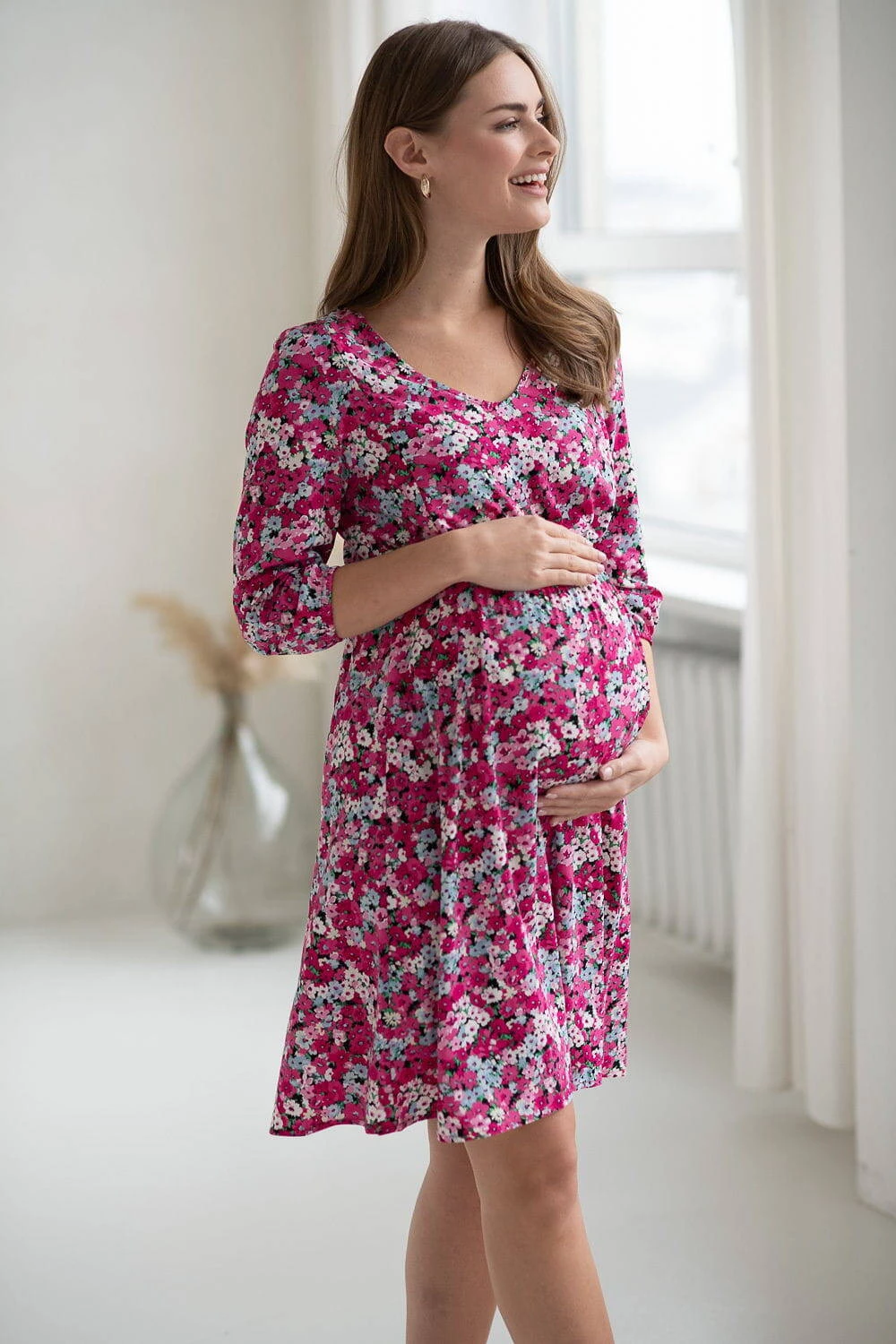 Sukienka ciążowa do karmienia Lovely Dress rękaw 3/4 w kwiatuszki