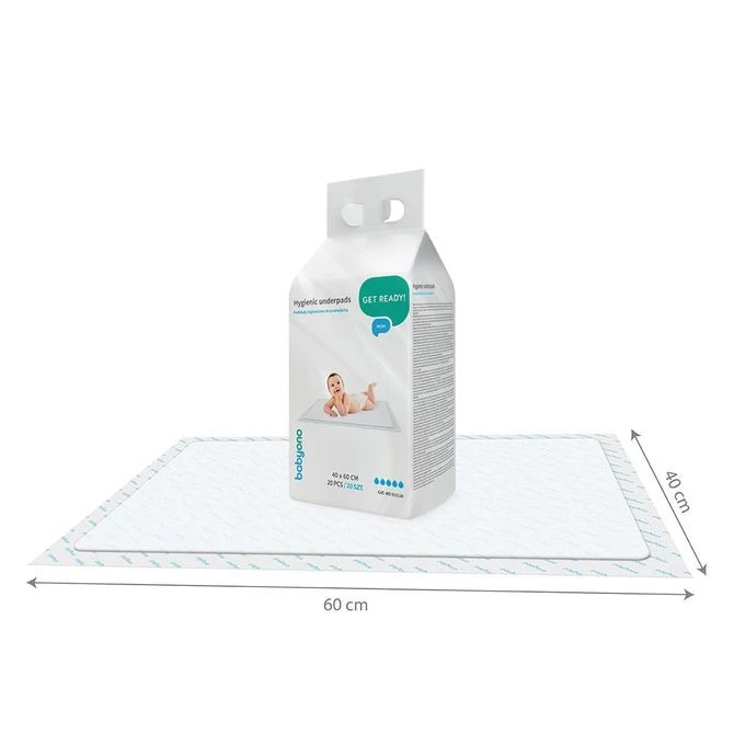 Podkłady higieniczne wykorzystasz podczas przewijania niemowląt. Przeznaczone są również dla kobiet w okresie połogu. Cechują się dużą chłonnością. Dzięki temu dają poczucie higieny i komfortu, zapewniając odpowiednią ochronę przed przemoczeniem. Zewnętrzna folia chroni przed zabrudzeniami. Superabsorbent znajdujący się wewnątrz podkładu szybko wchłania płyny oraz neutralizuje nieprzyjemne zapachy. Podkłady doskonale sprawdzą się jako ochrona pościeli i materaca w łóżeczku maluszka w czasie nauki korzystania z nocnika. Zewnętrzna warstwa jest miękka i delikatna dla wrażliwej skóry, przepuszcza powietrze, co zapobiega odparzeniu.